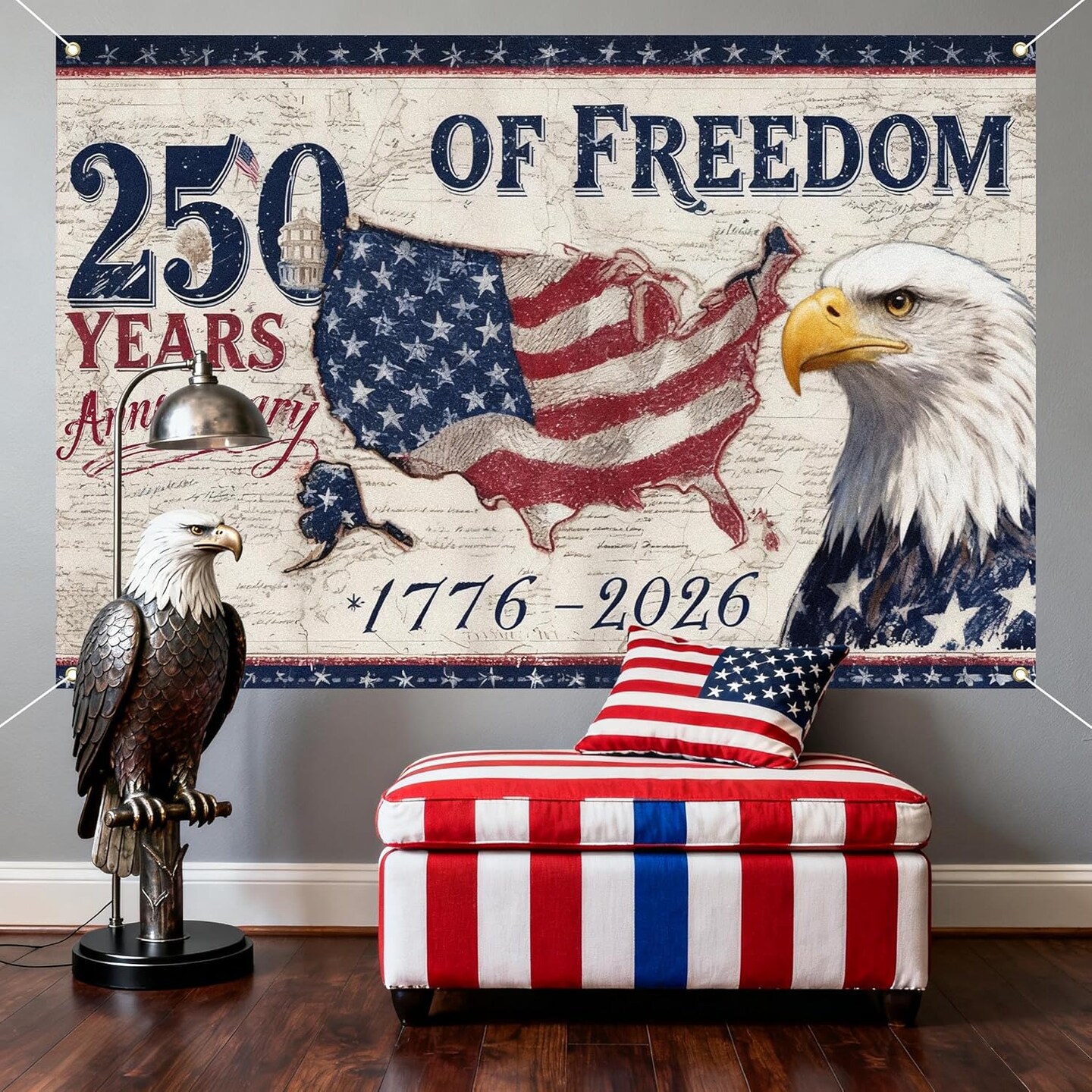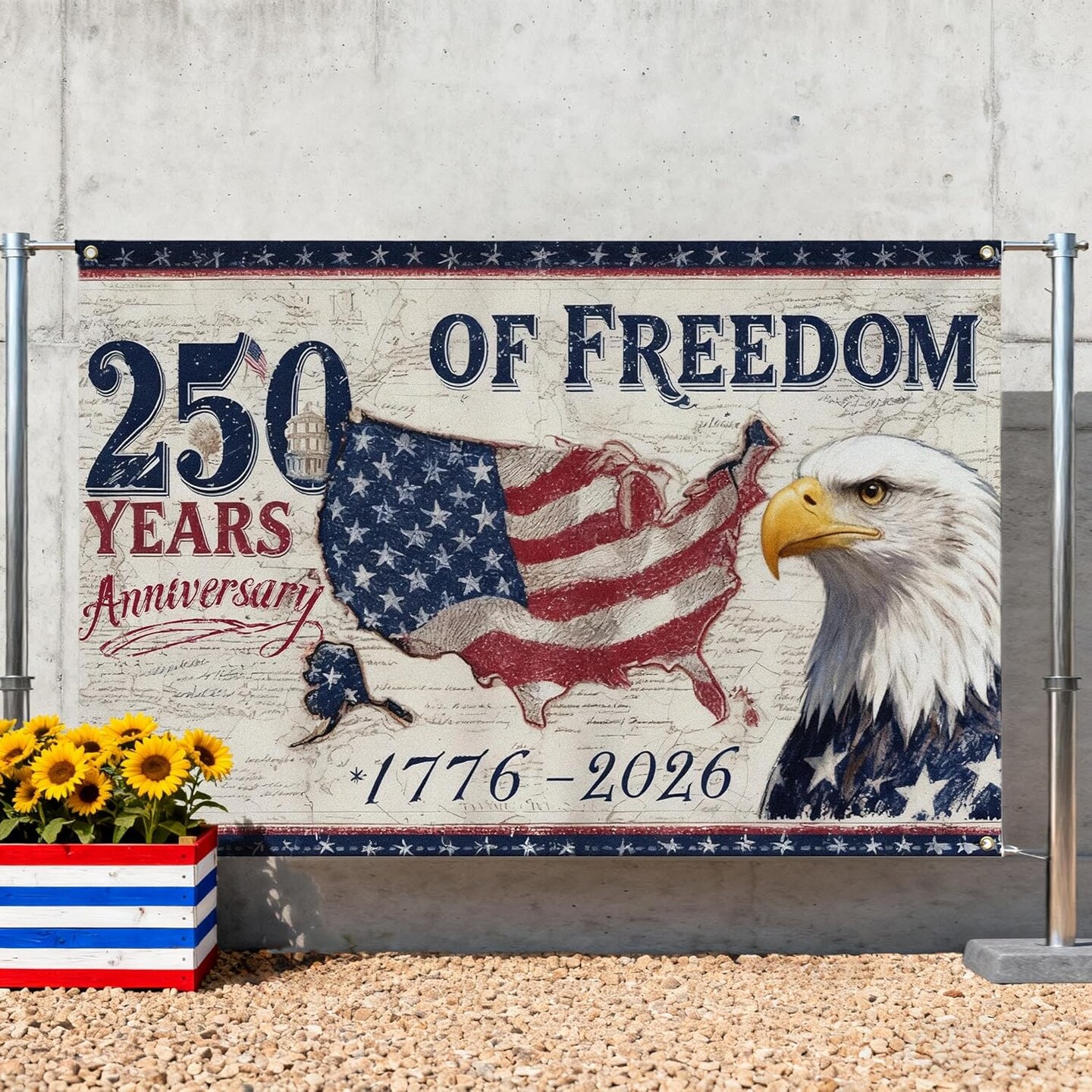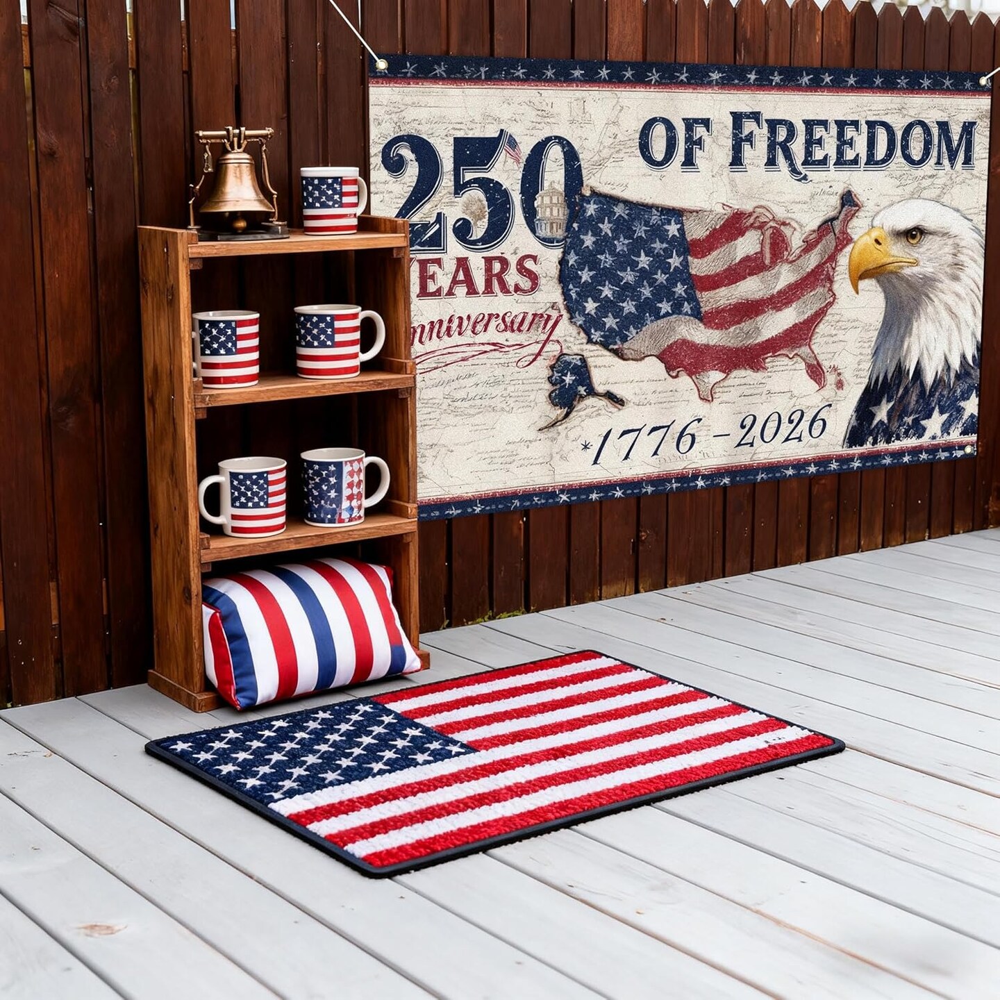 American 250 Years of Freedom Backdrop 1776-2026 American 250 Anniversary Party Decoration 250th USA Independence Patriotic Photo Booth Background for Independence Day 4th of July-3.6 x 6 Ft