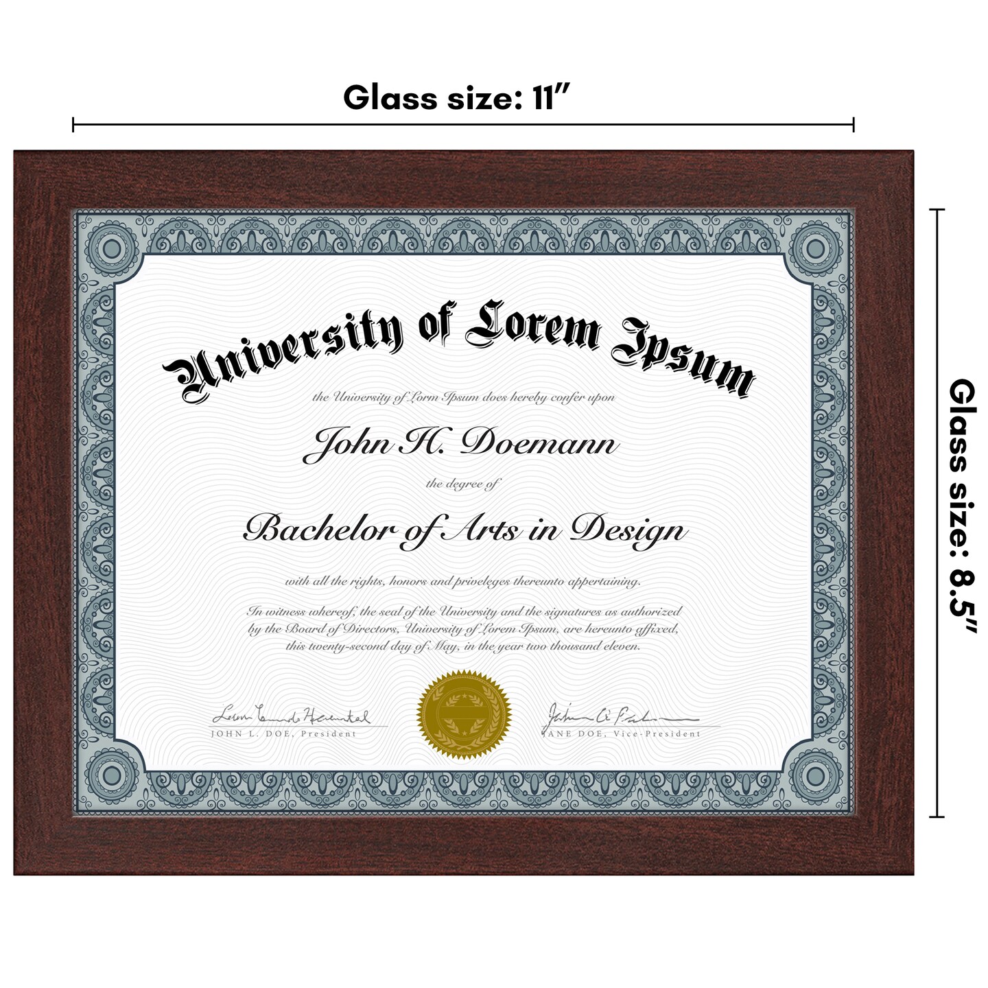 American 8.5x11 Diploma Frame - Certificate Photo Frame - Shatter Resistant Glass - Adjustable Hanging Hardware for Horizontal or Verticle Wall Display - Includes Easel