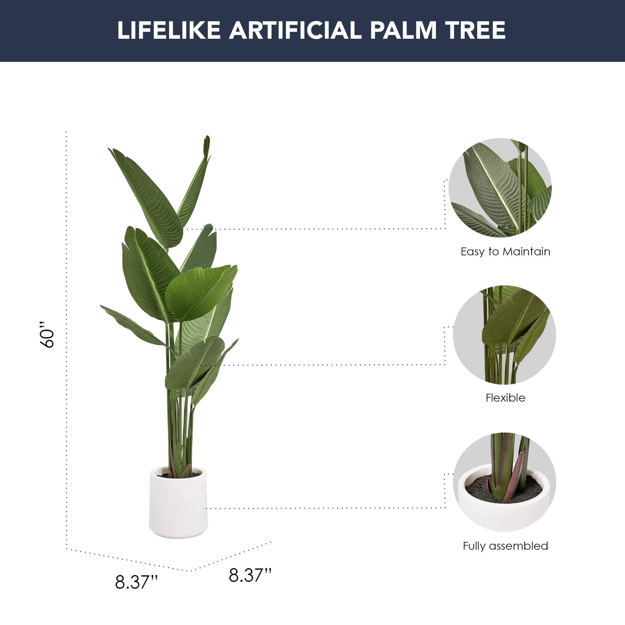 American Art Decor 5ft. Realistic Artificial Palm Tree in White Pot