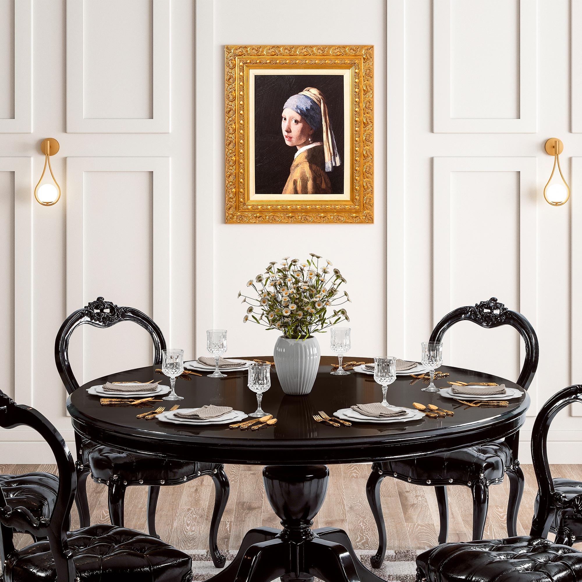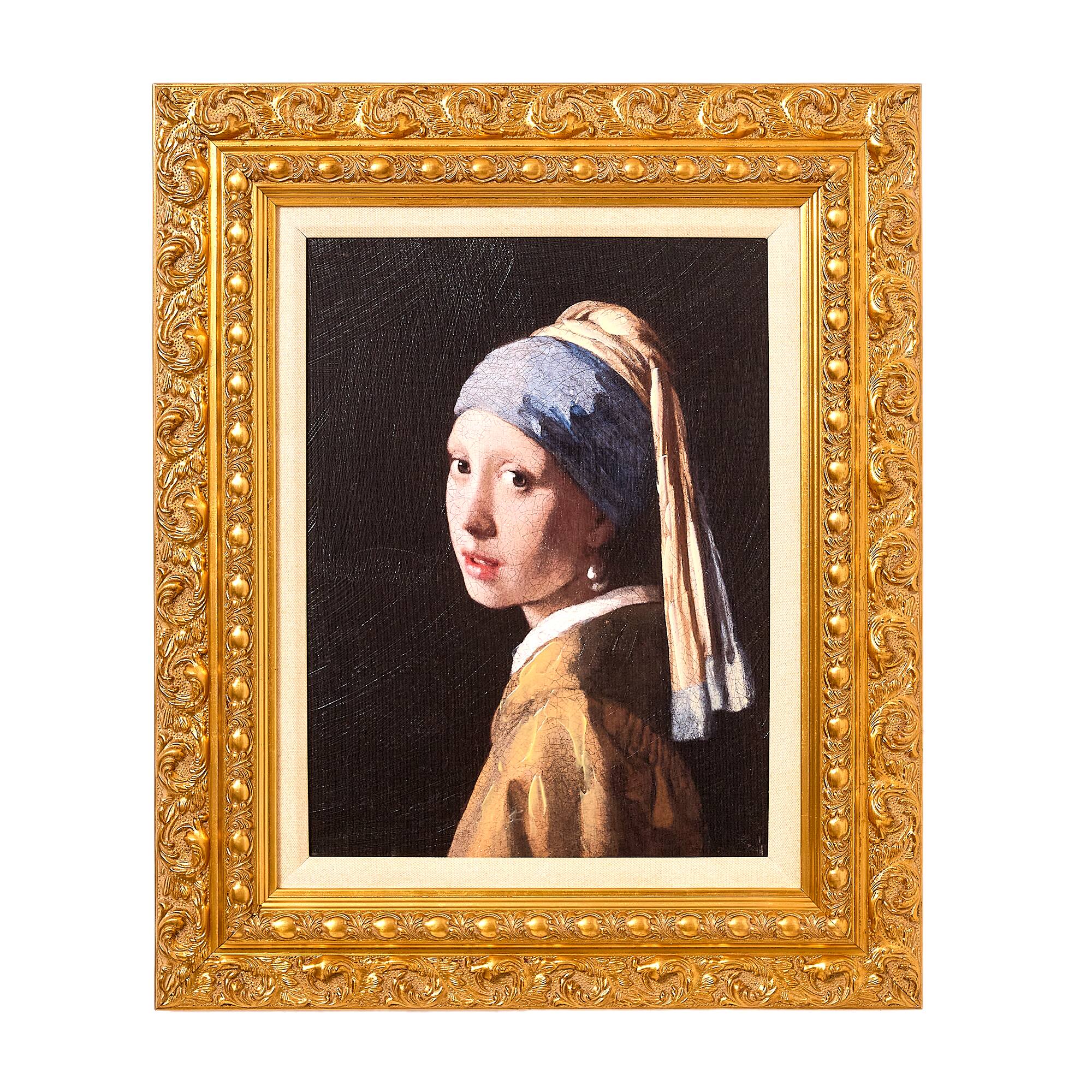 American Art Decor Ornate Framed Girl with a Pearl Earring Canvas Print by Johannes Vermeer - 19.25" x 23.25"