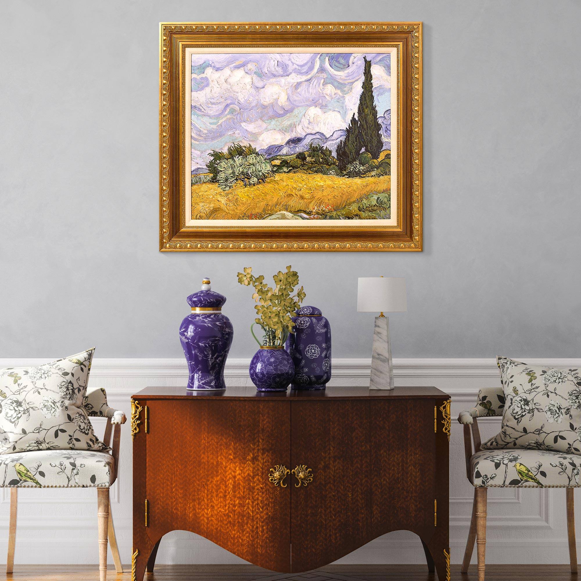 American Art Decor Ornate Framed Wheat Field with Cypresses Canvas Print by Vincent van Gogh - 30.75" x 26.75"