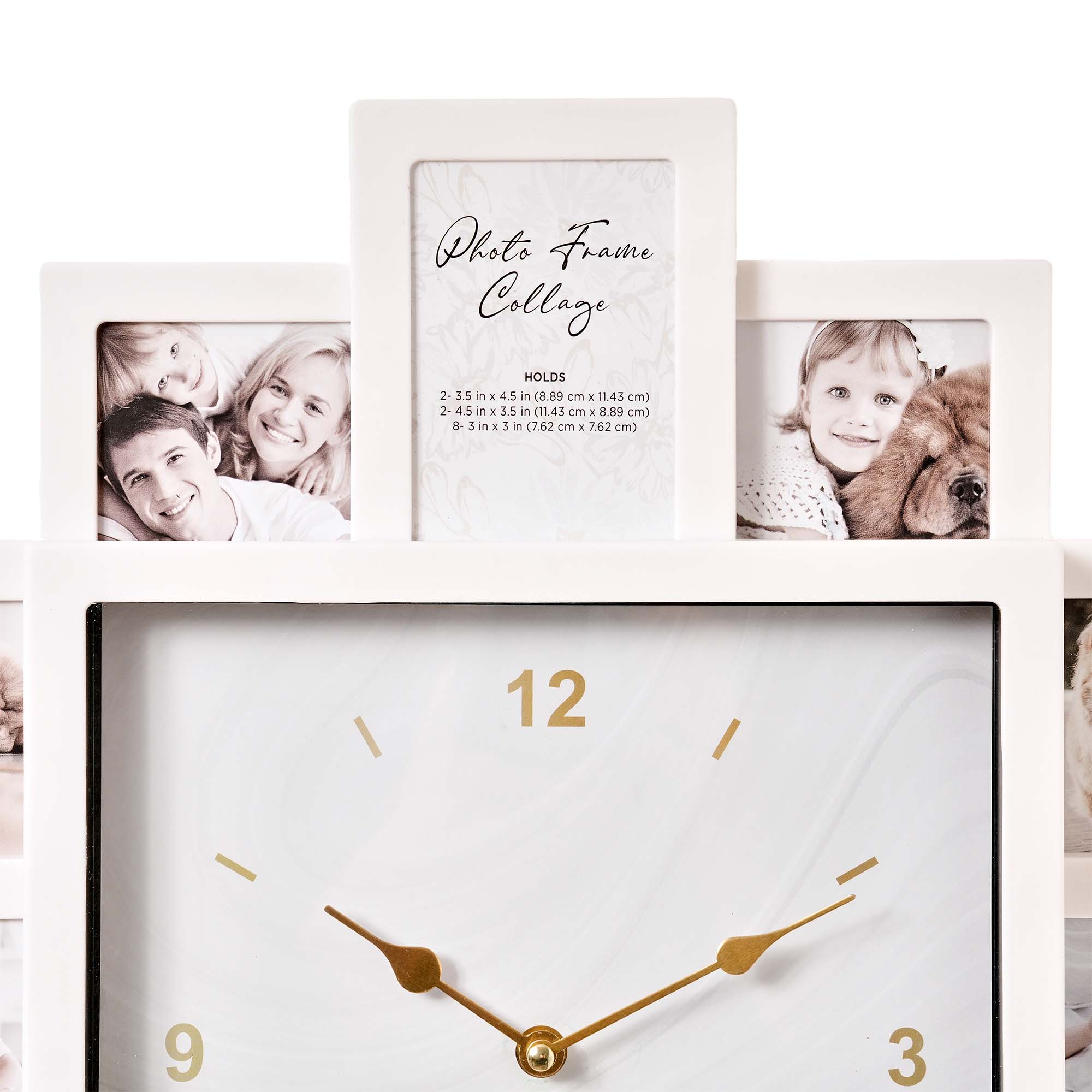 American Art Decor Picture Frame Collage Clock 12 Photo Display Slots White, 20" x 20"