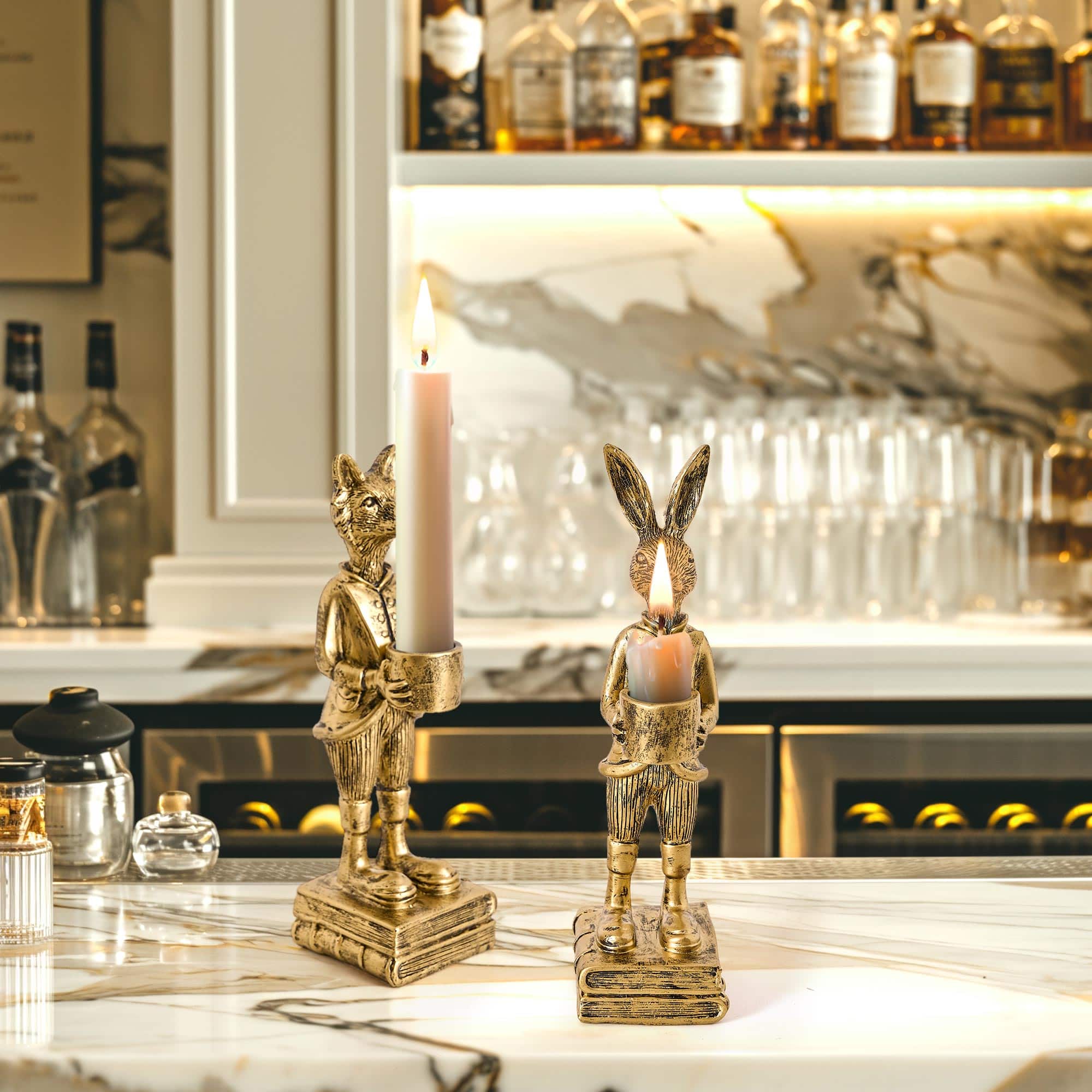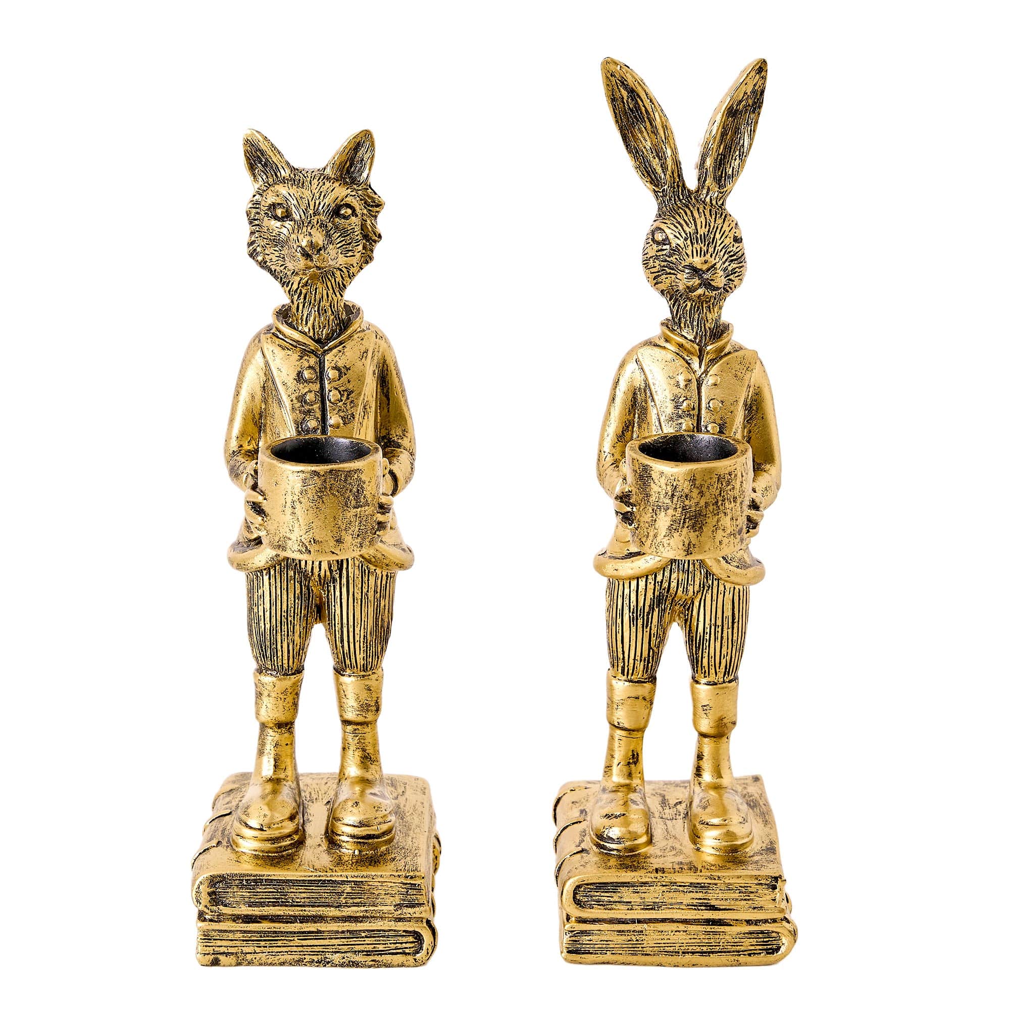 American Art Decor The Fox and Rabbit Gold Resin Tabletop Bar Decor - 8" x 2.25" x 2.25", 8.75" x 2" x 2.25"