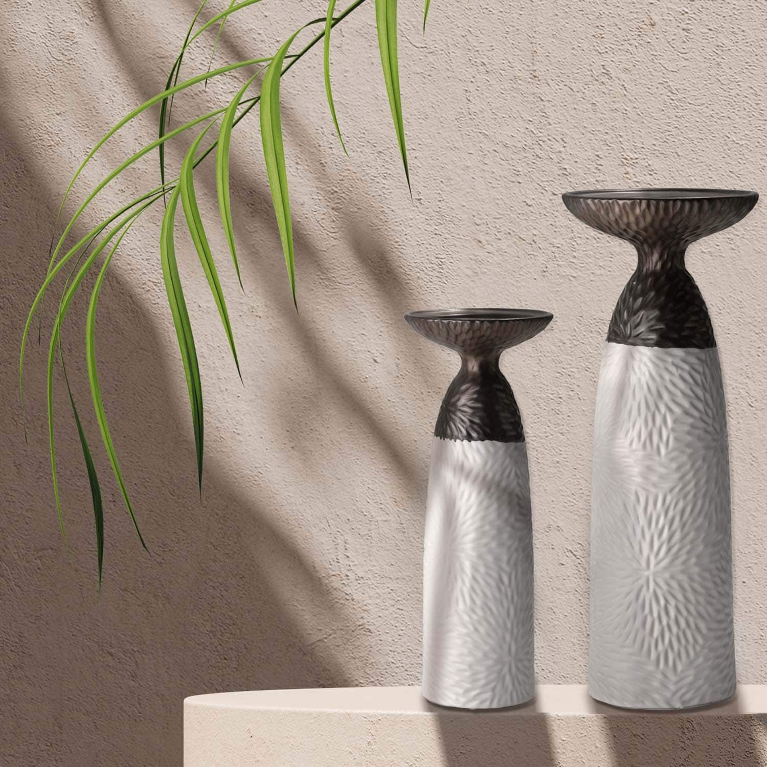 American Art Decor Twin Crucibles 2-Piece Table Top Candle Holder Set in White - 15.25" x 4.5", 15.25" x 4.5"