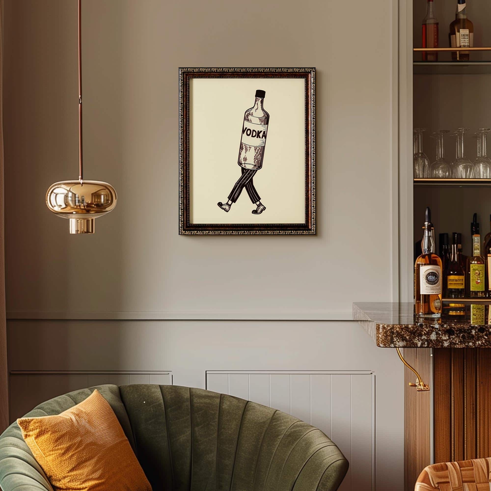American Art Decor Walking Vodka Printed Glass Framed Wall Decor