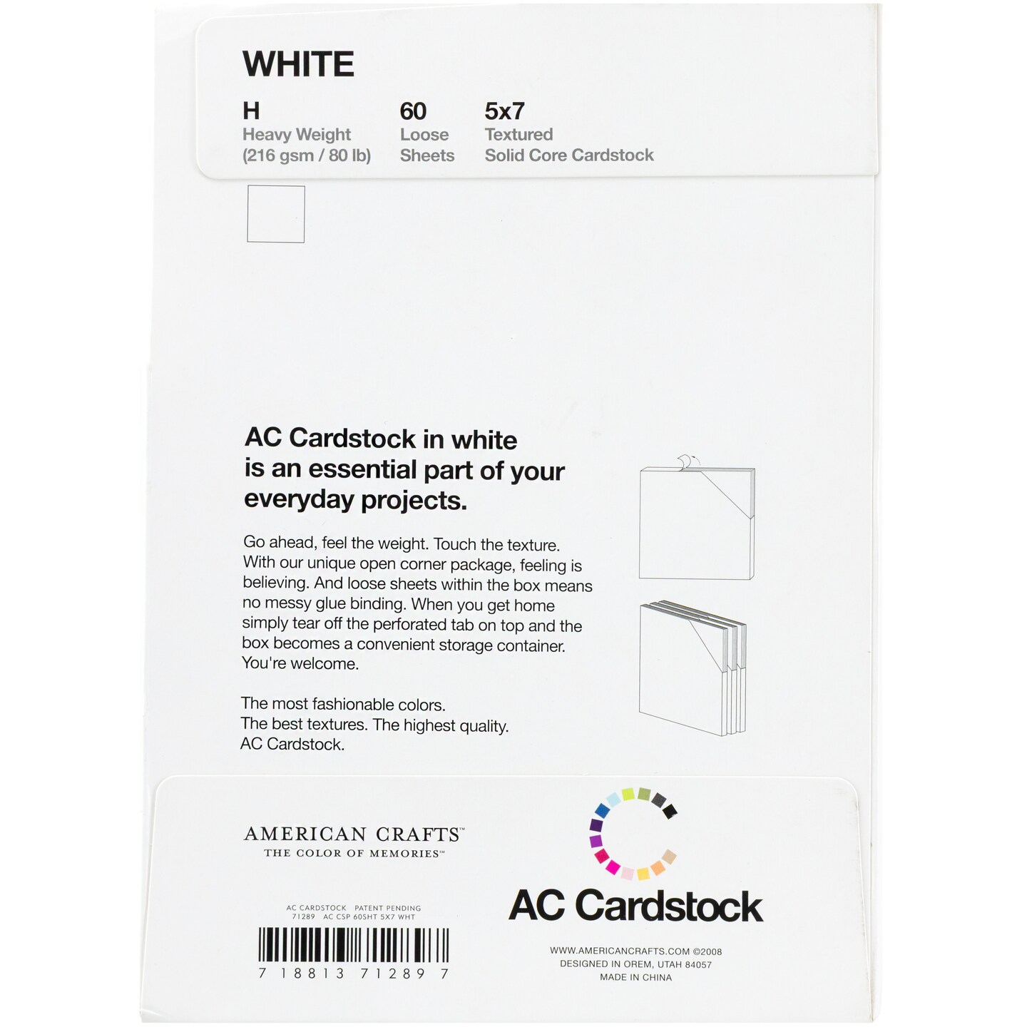 American Crafts 5x7" Textured Cardstock Pack - Solid White, 60 Sheets