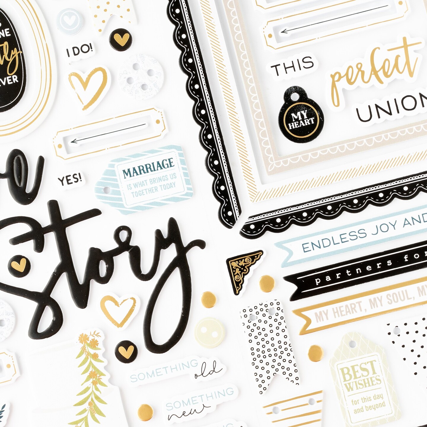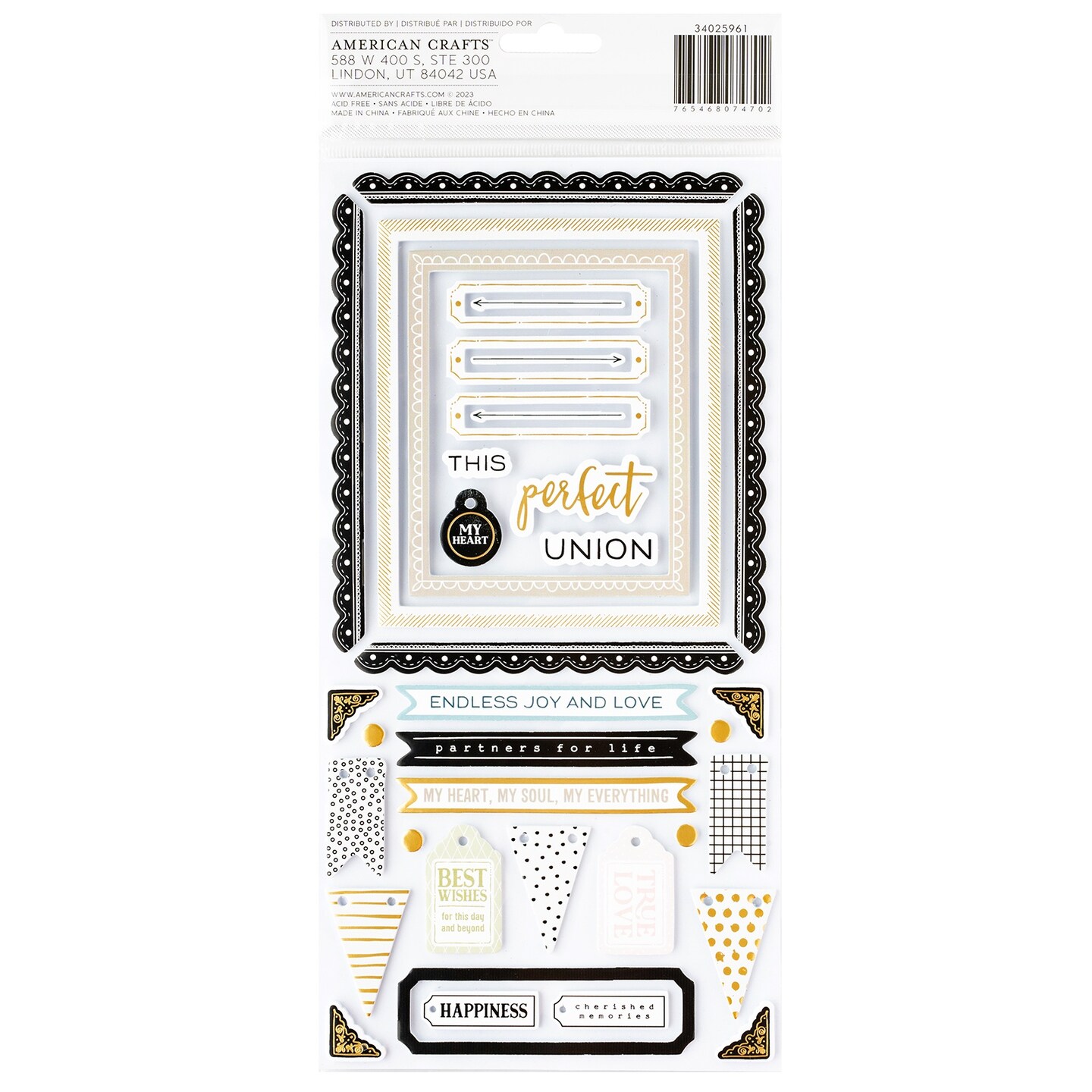 American Crafts A Perfect Match Thickers Stickers 91/Pkg-Phrase, Gold Foil