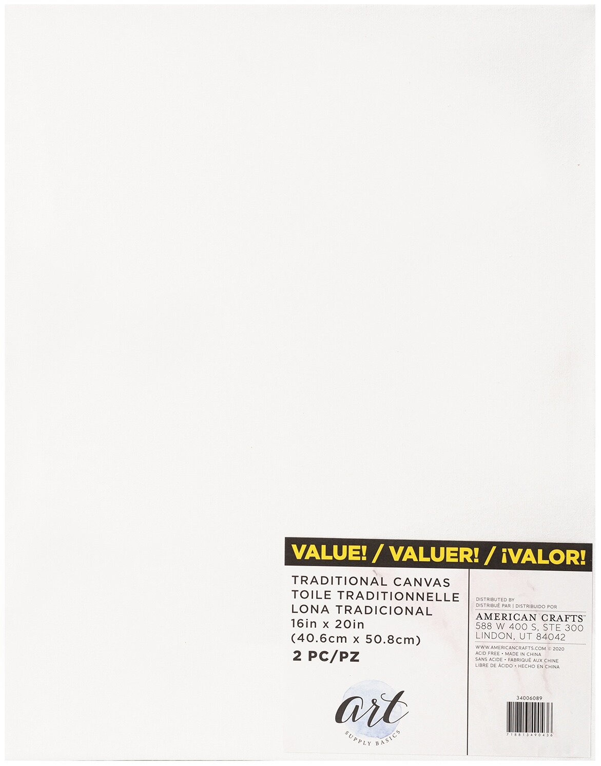 American Crafts Art Supply Basics Stretched Canvas 2/Pkg-16"X20"