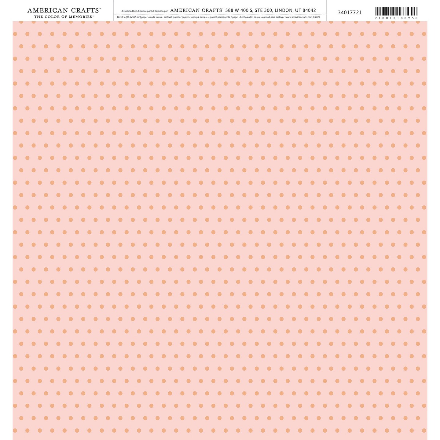 American Crafts Cardstock 12"X12"-Pink Peach Dot
