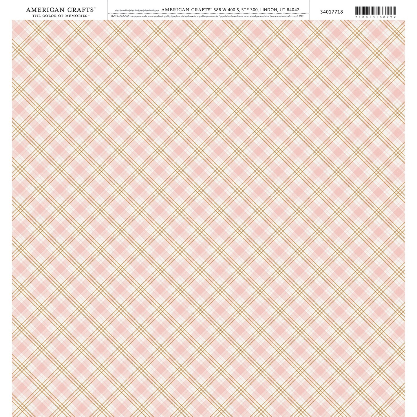 American Crafts Cardstock 12"X12"-Pink Tan Plaid