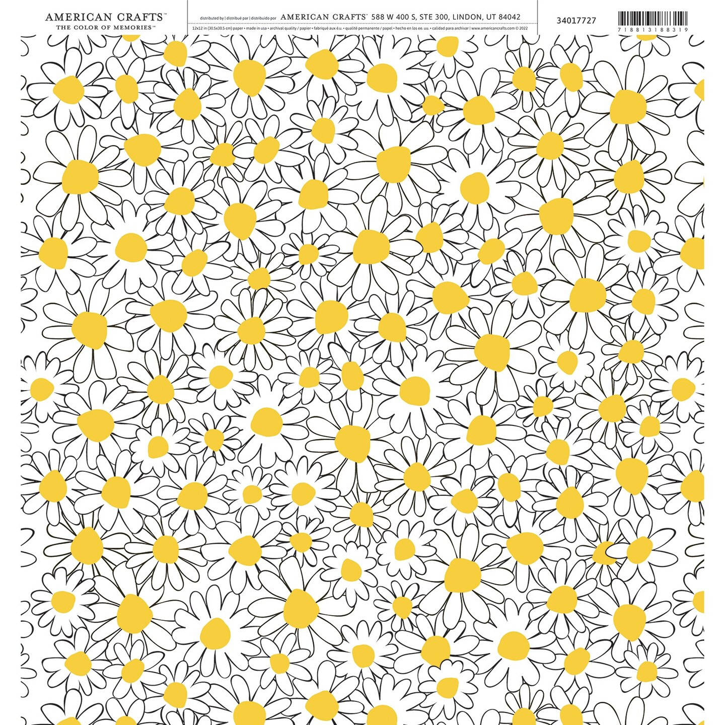 American Crafts Cardstock 12"X12"-Yellow Center Daisy