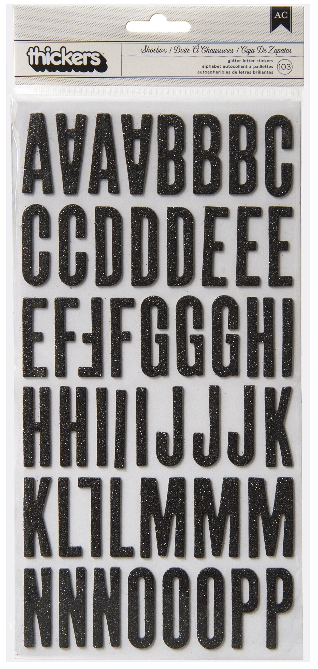 American Crafts Chipboard Alphabet Stickers-Shoe Box-Black Glitter, 103/Pkg