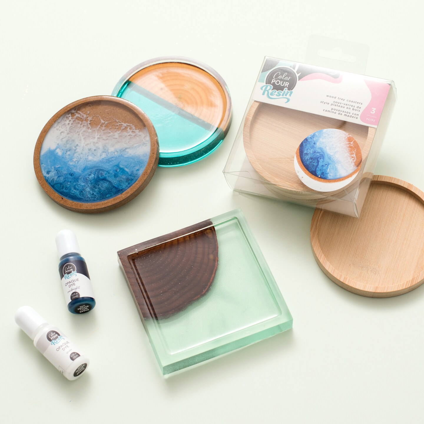 American Crafts Color Pour Resin Coasters 3/Pkg-Tray