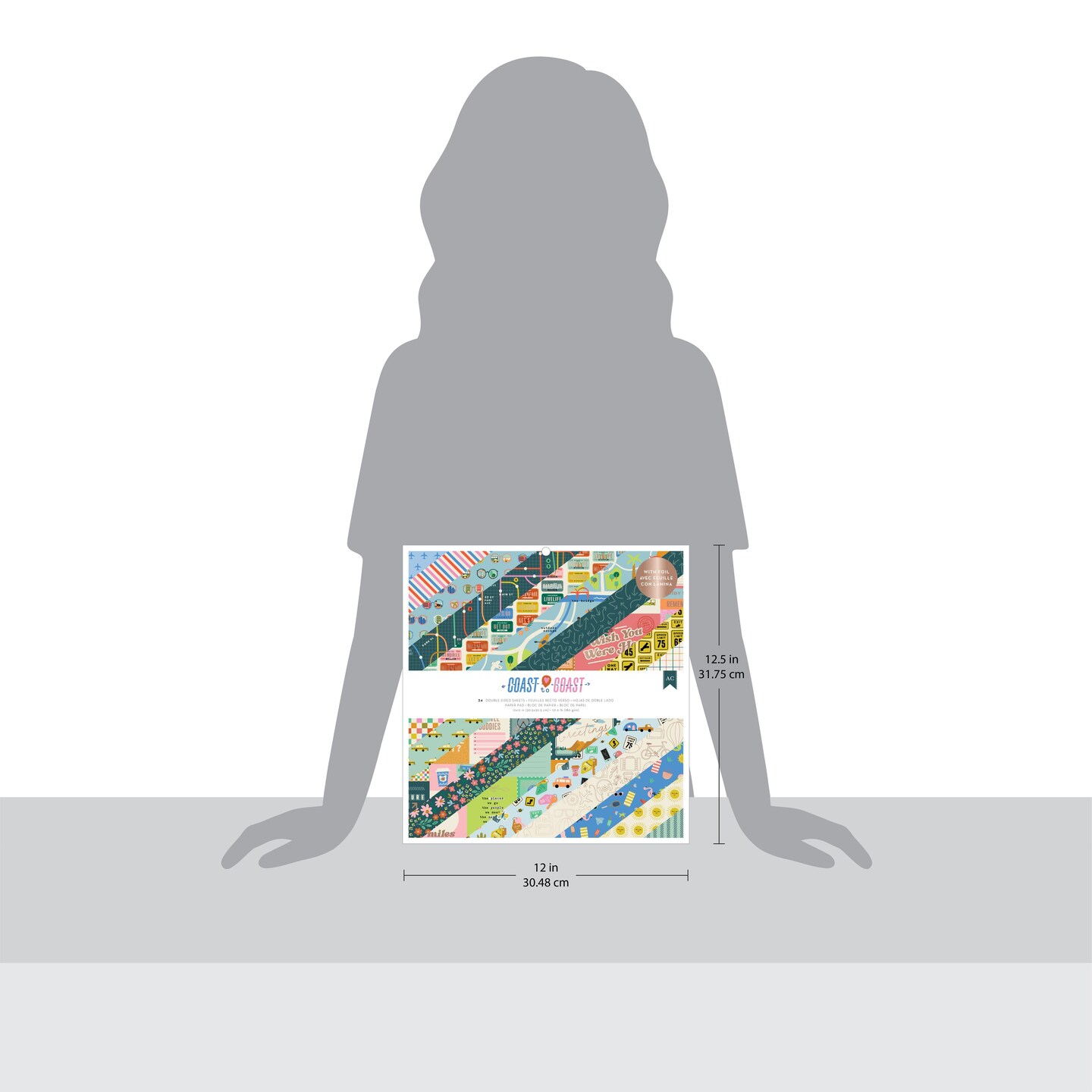 American Crafts Double-Sided Paper Pad 12"X12" 24/Pkg-Gold Foil, Coast-to-Coast