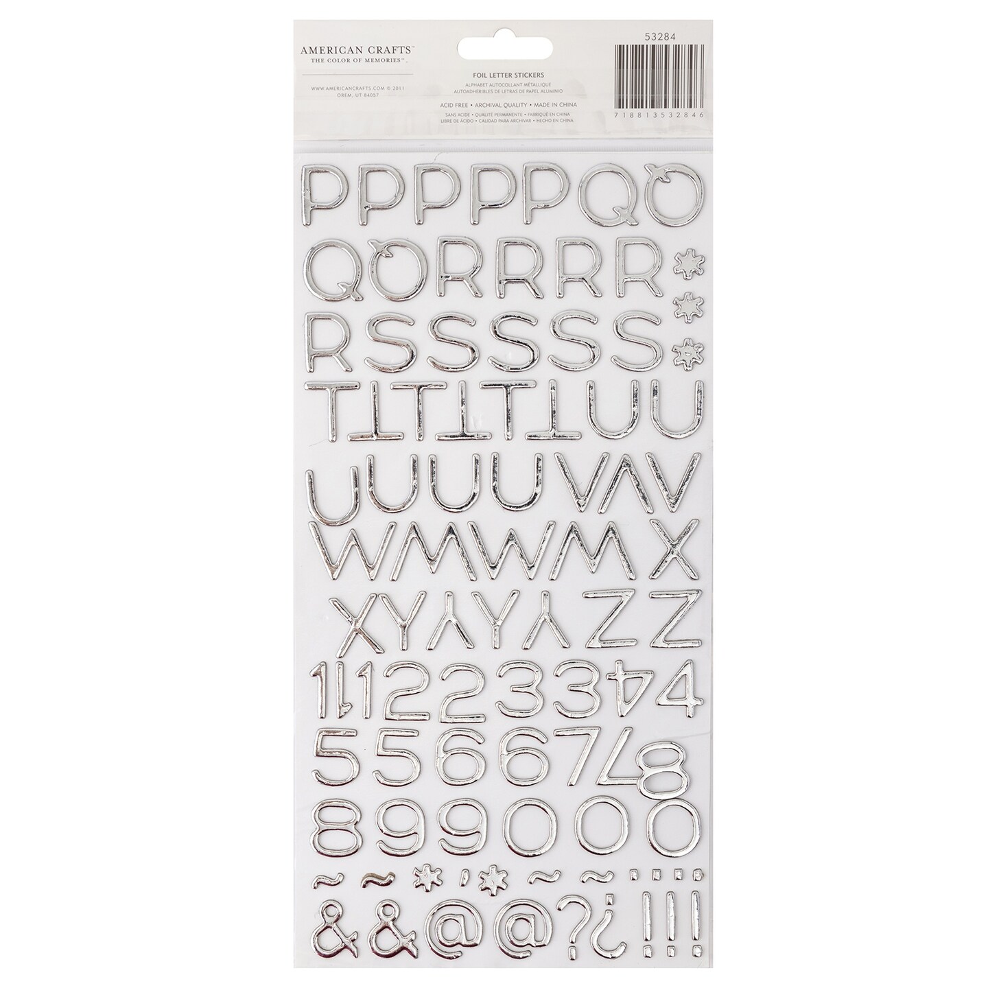 American Crafts Foil Alphabet Stickers-Hardcover-Silver, 198/Pkg