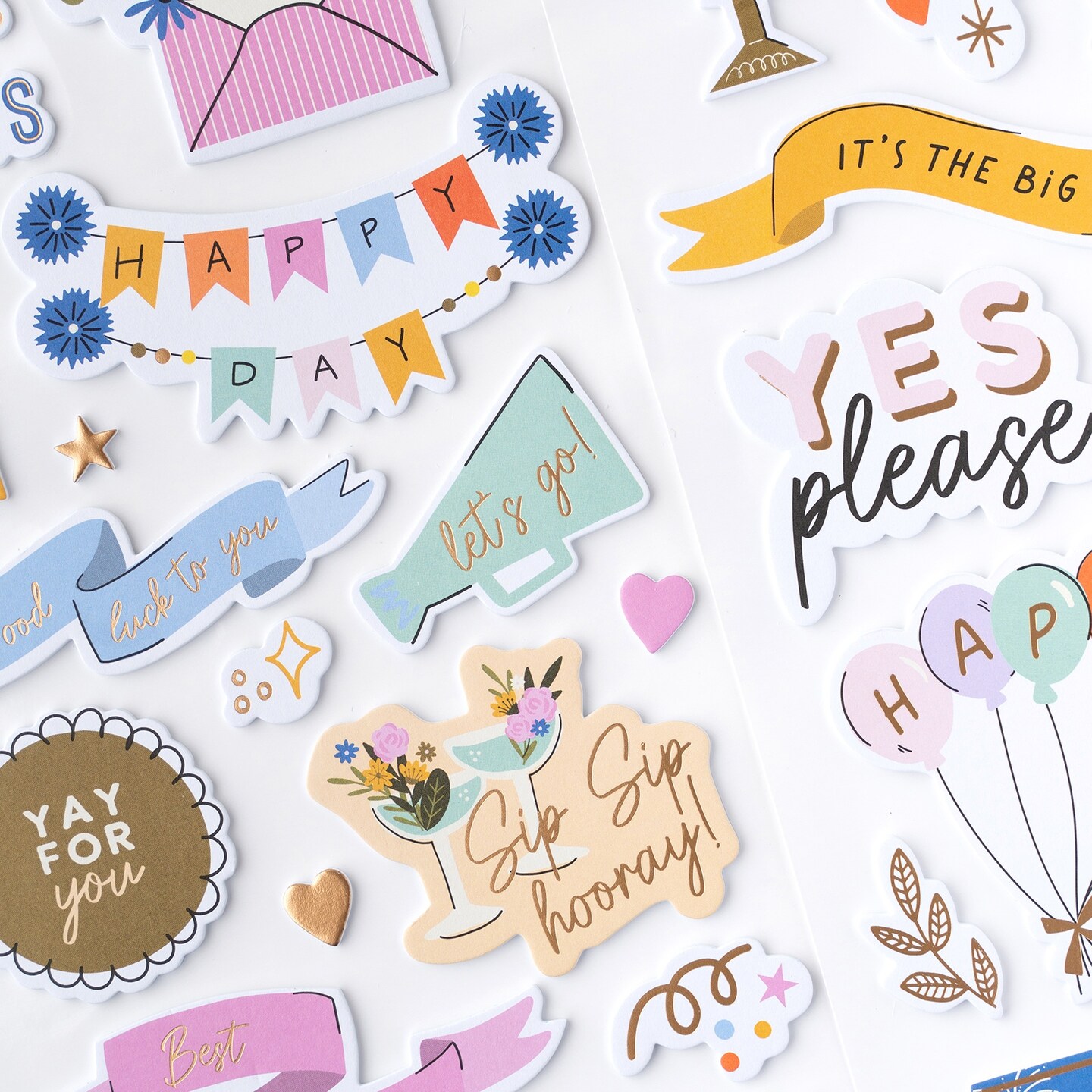 American Crafts Life Of The Party Thickers Stickers 34/Pkg-Gold Foil Phrase