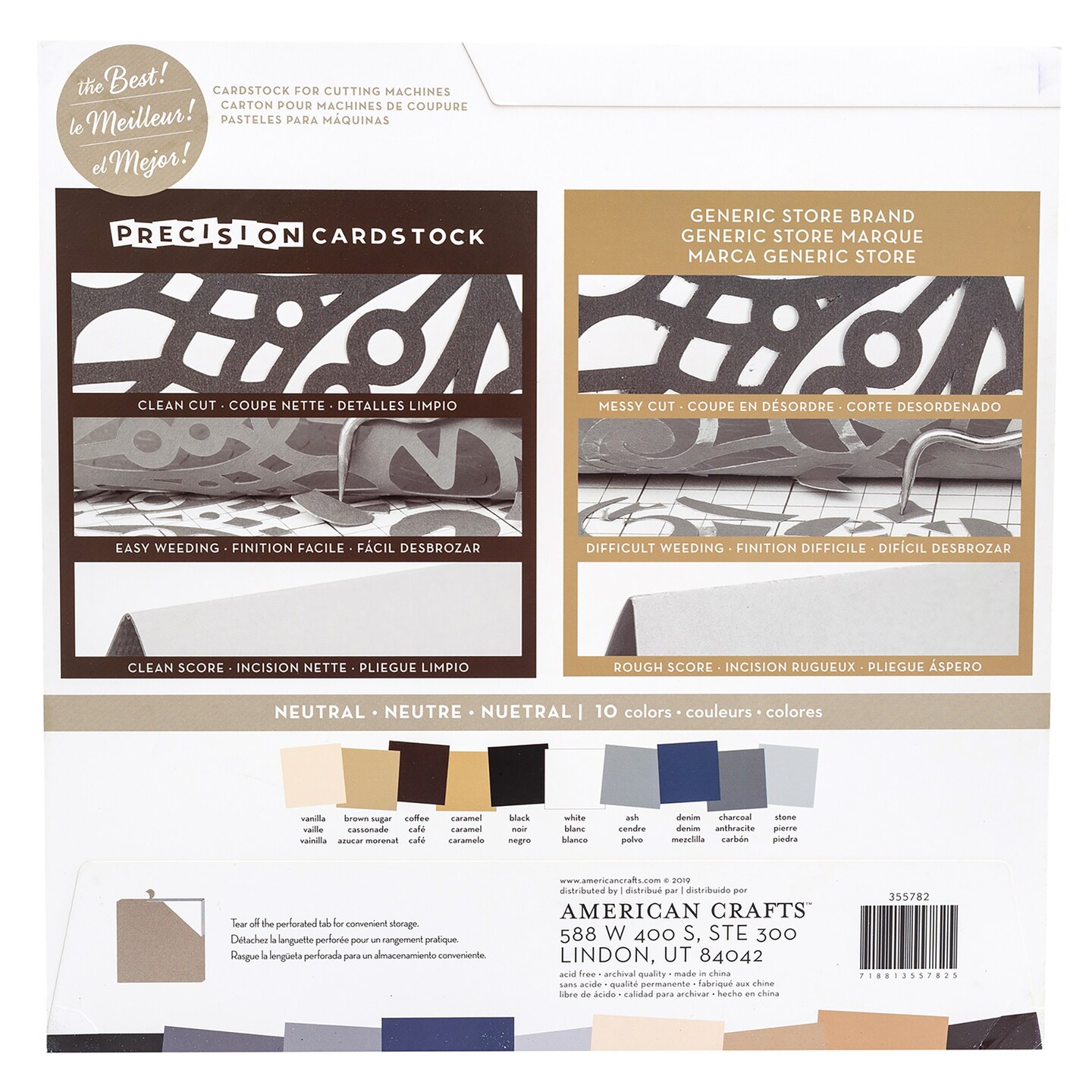 American Crafts Precision Cardstock Pack 80lb 12"X12" 60/Pkg-Neutral/Smooth