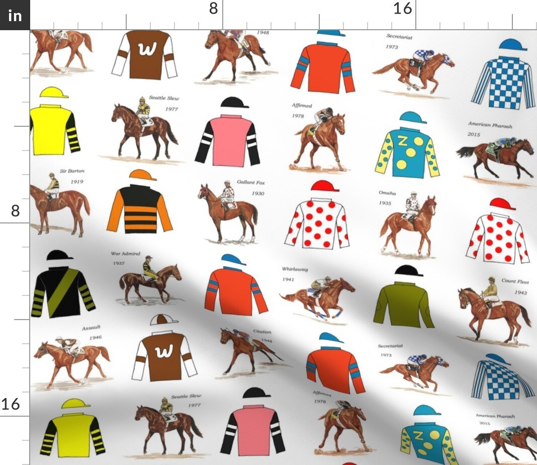 American Crown Off Black Horses Horse Racing Custom Printed Fabric by Spoonflower Various Fabrics by the Yard or Fat Quarter