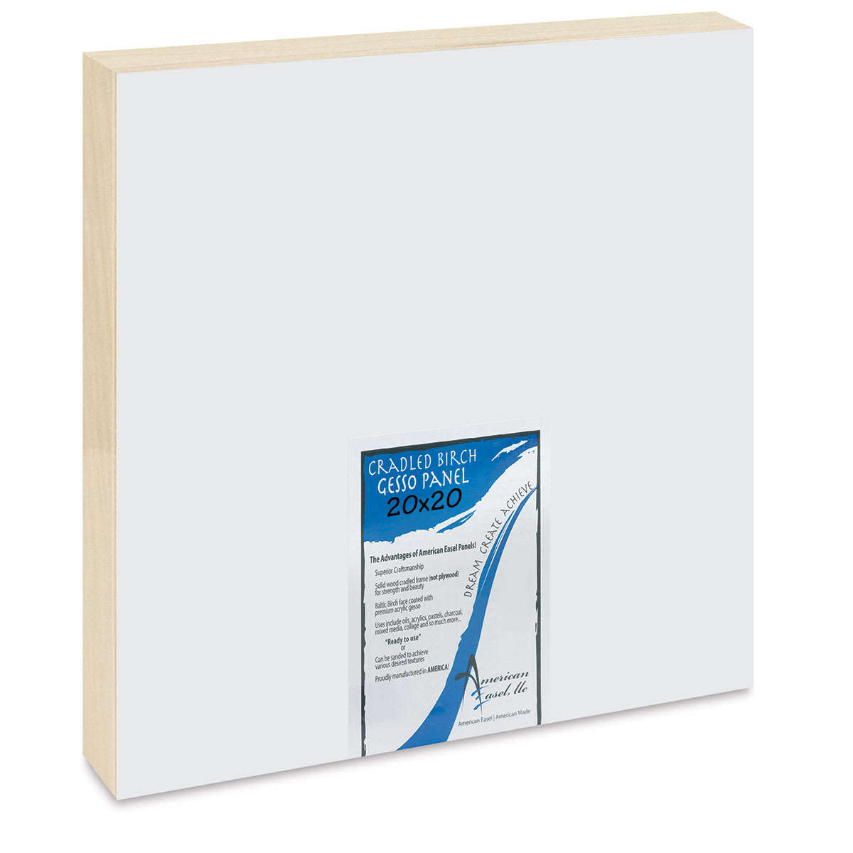 American Easel Gessoed Wood Painting Panel - 20" x 20", 1-5/8" Deep Cradle
