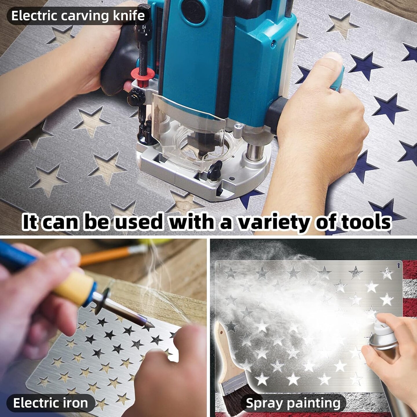 American Flag and 50 Stars Stencils (201 Stainless Steel)