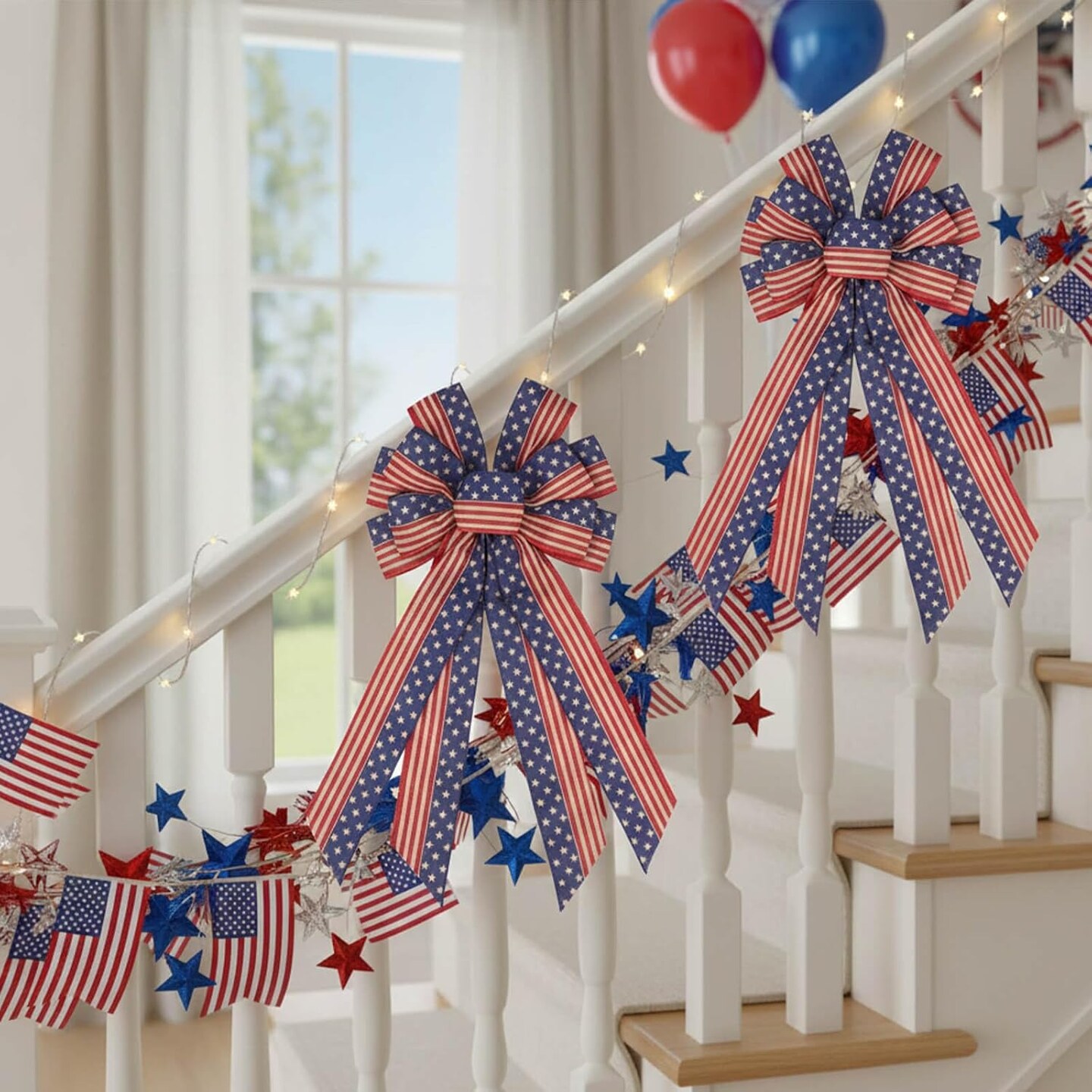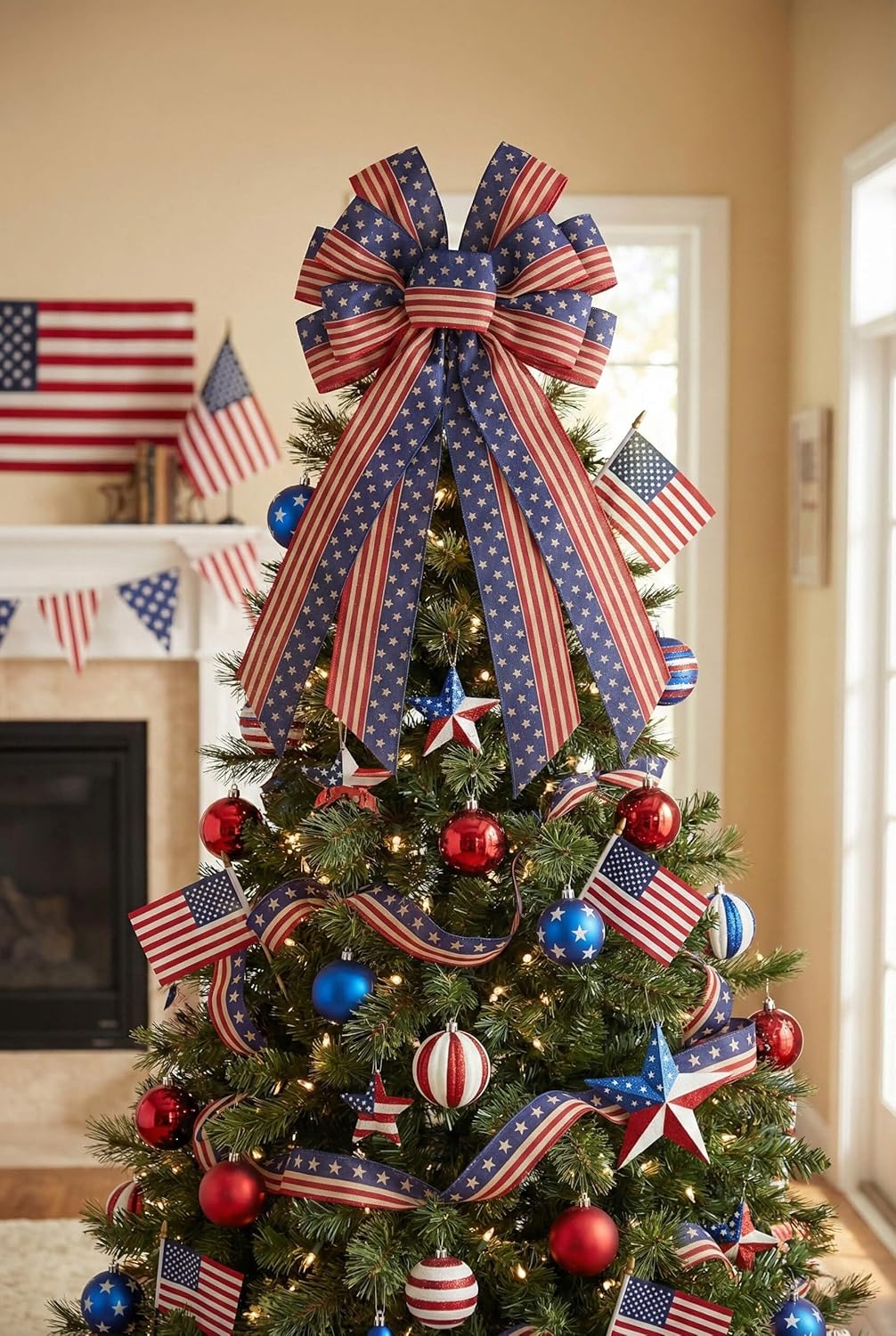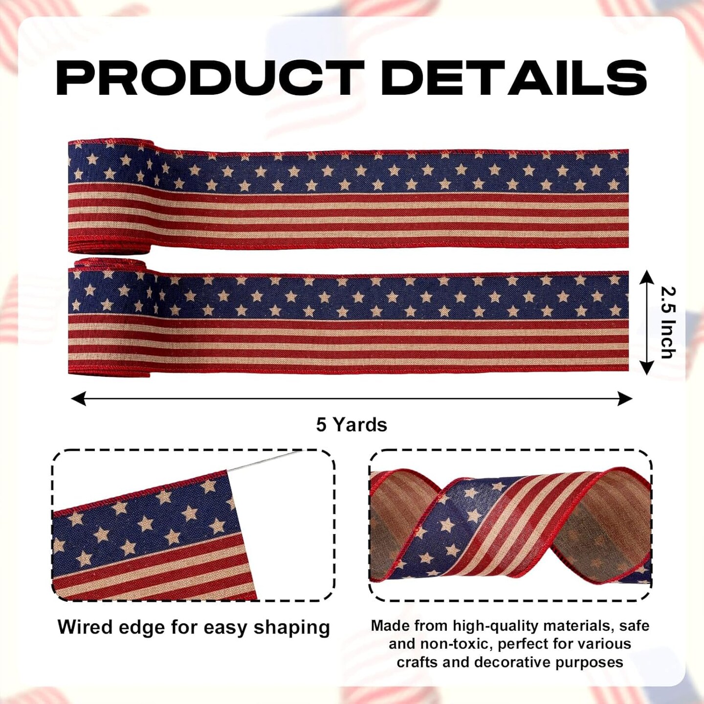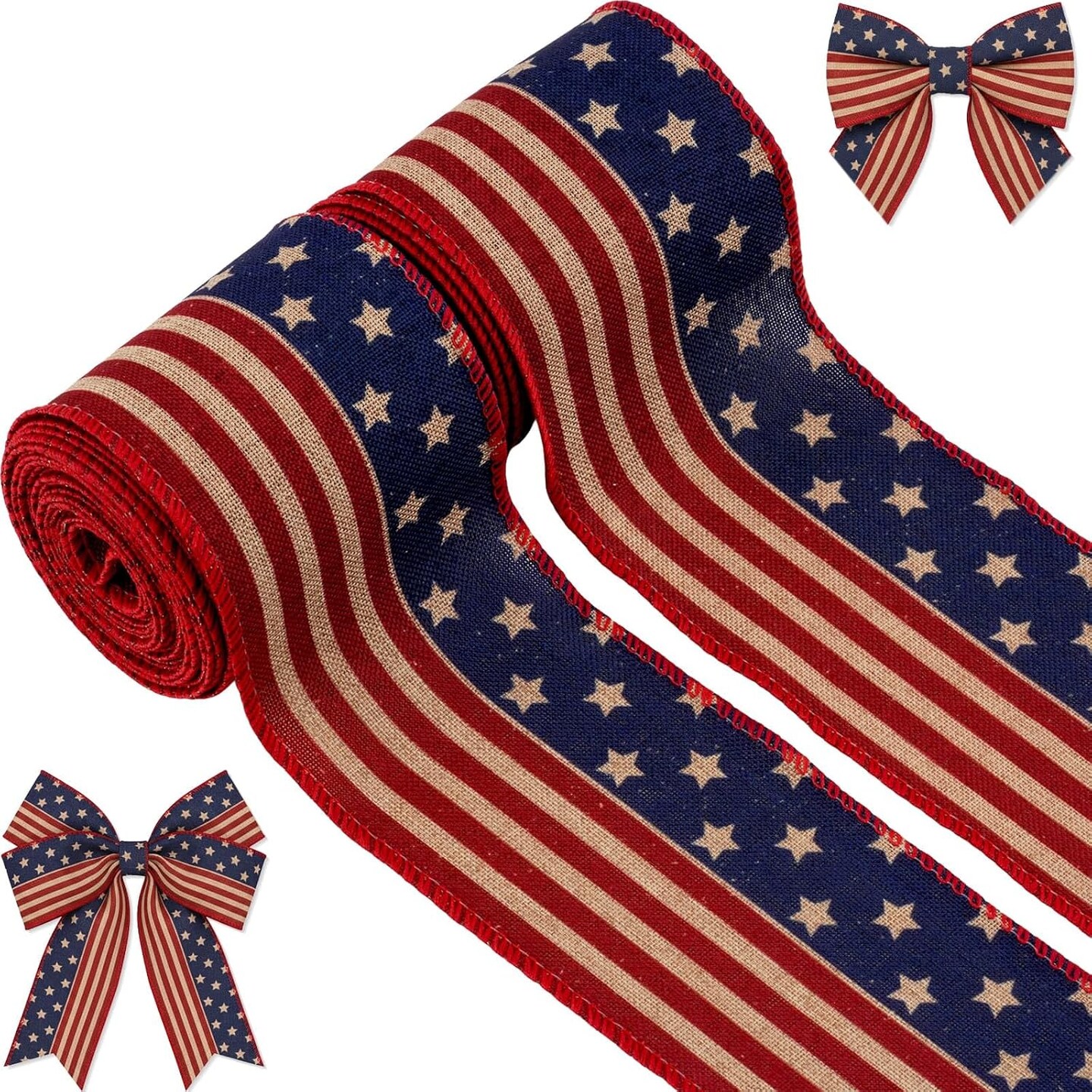 American Flag Ribbon 2.5" x 10 Yards (2 Rolls) – Patriotic Red, White & Blue Stars & Stripes Ribbon for 4th of July Wreaths, Bows, Crafts, Party Decorations