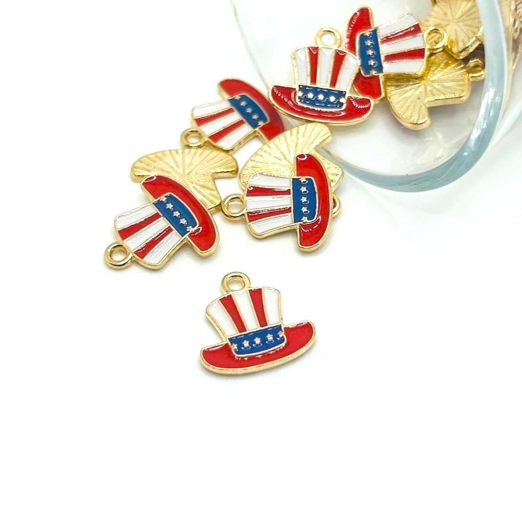 American Flag Uncle Sam Hat Charms, 15x15mm