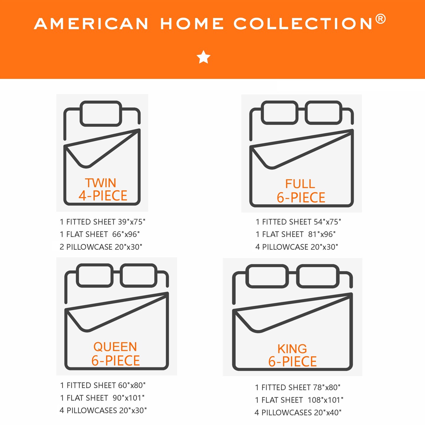 American Home Collection Patchwork Bedding Sheets & Pillowcases Set Brushed Microfiber Wrinkle Free Sheet Set