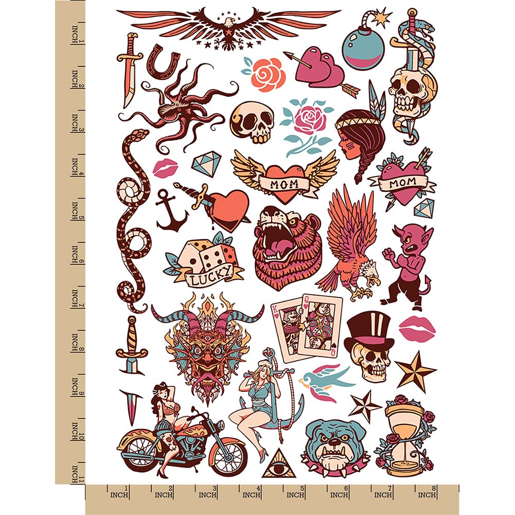American Traditional Vintage Old Style Temporary Tattoo Water Resistant Fake Body Art Set Collection