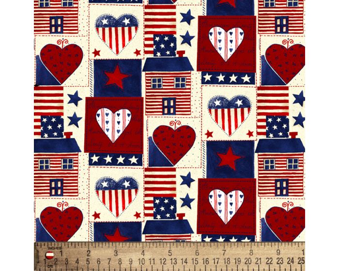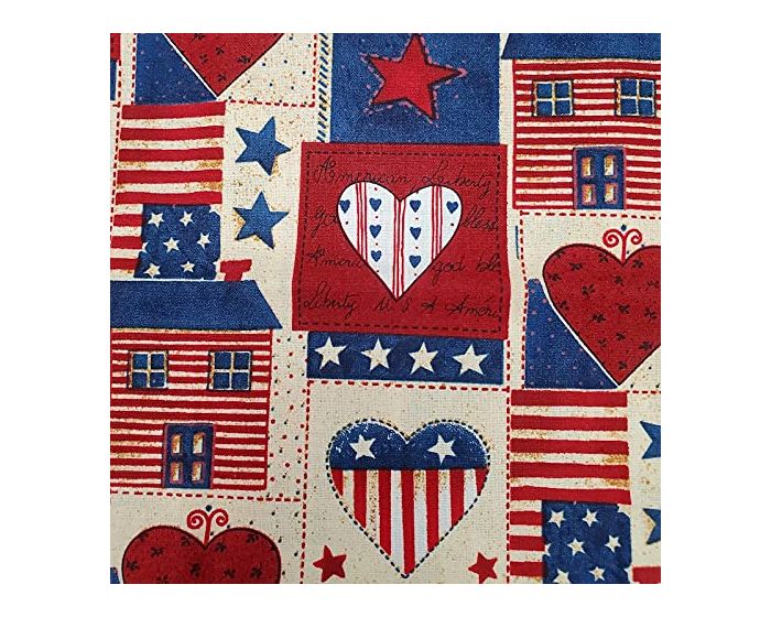 Americana Heart Patch Cotton Fabric | By the Yard | Sewing and Crafting | 44 inches wide