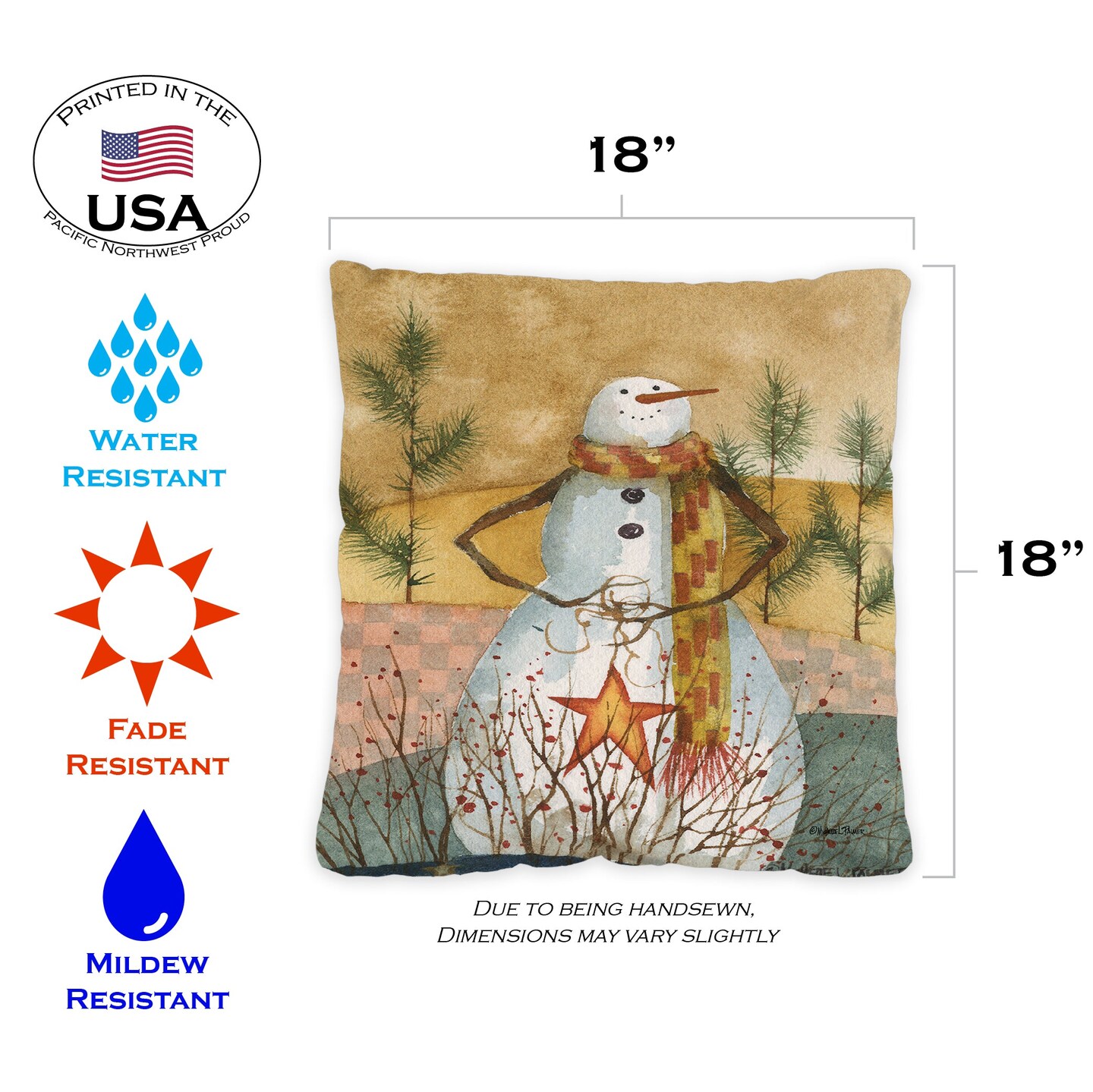 Americana Snowman Decorative Winter Indoor/Outdoor Pillow Cover (set of 2)