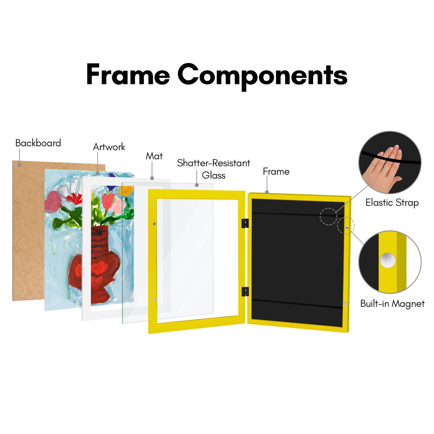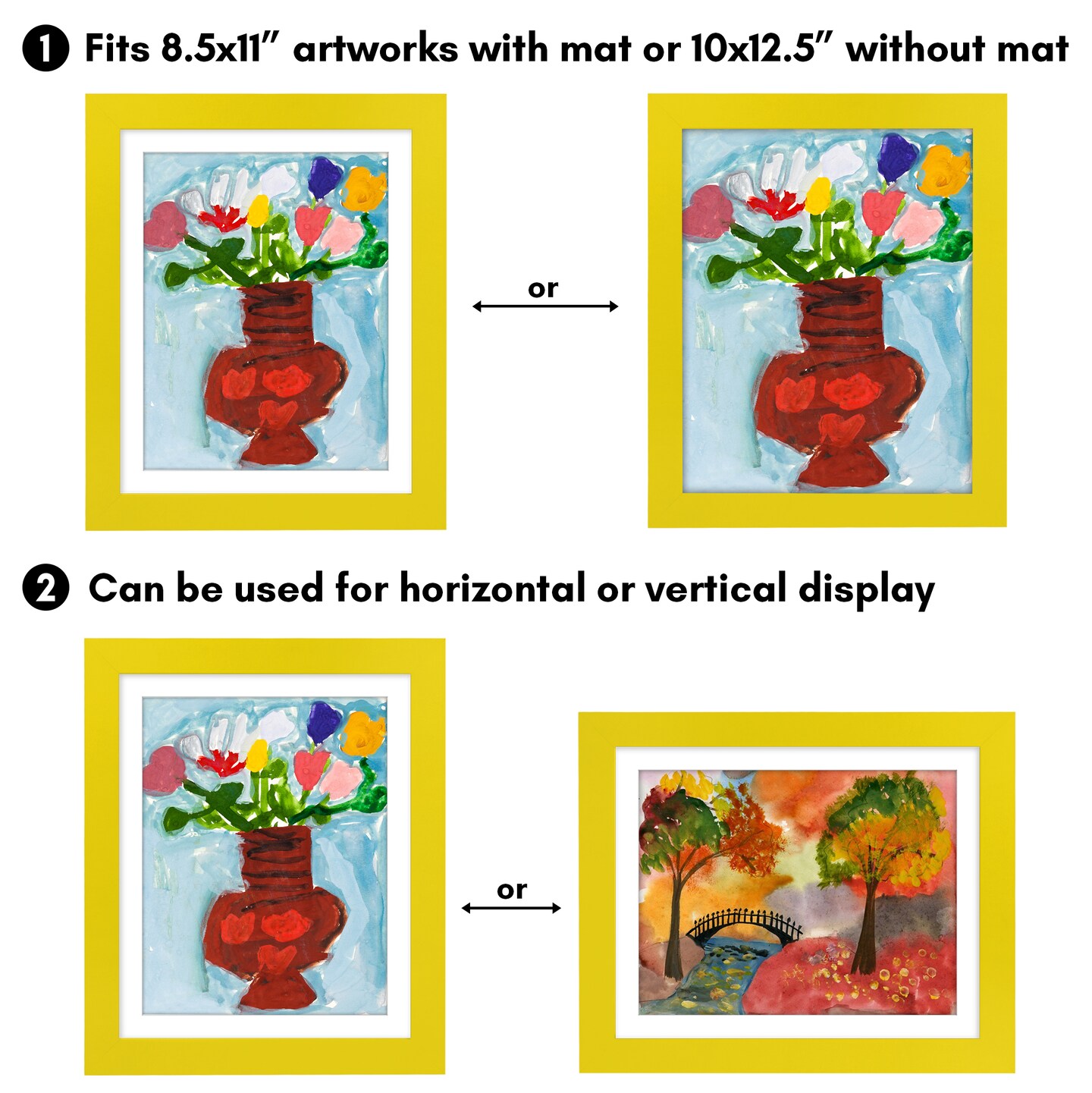 Americanflat 10x12.5 Kids Art Frame - 8.5x11 with Mat or 10x12.5 without Mat - Kids Artwork Frame - Magnetic Frame Closure - Shatter Resistant Glass - Hanging Hardware