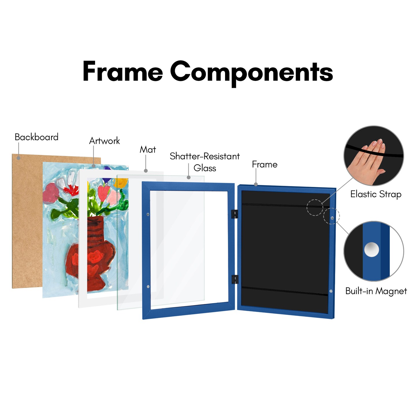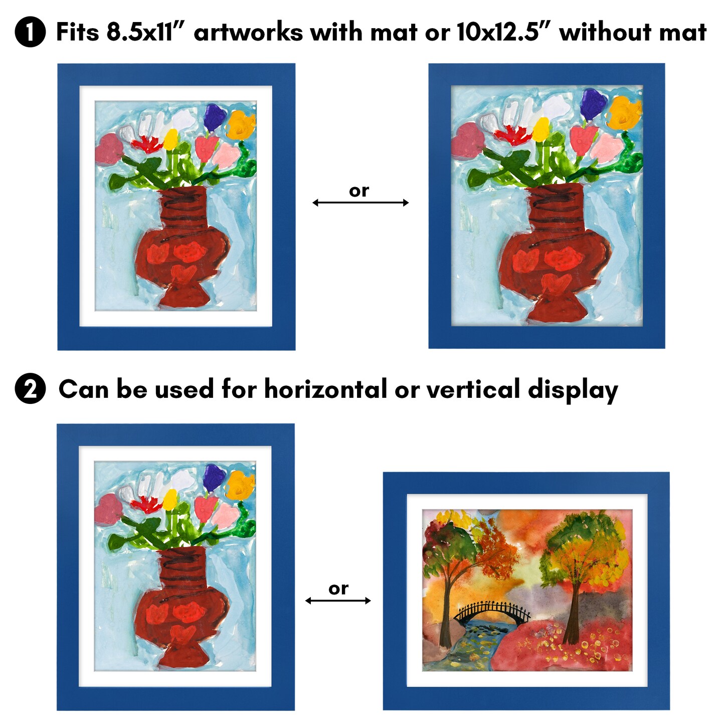 Americanflat 10x12.5 Kids Art Frame - 8.5x11 with Mat or 10x12.5 without Mat - Kids Artwork Frame - Magnetic Frame Closure - Shatter Resistant Glass - Hanging Hardware