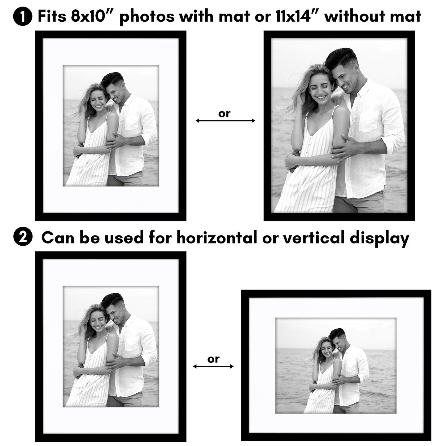 Americanflat 11x14 Black Picture Frames - Shatter-Resistant Glass - 3 Pack - Use as 8x10 with mat or as 11x14 frame without mat