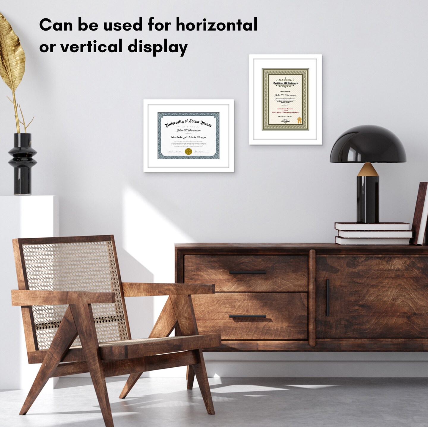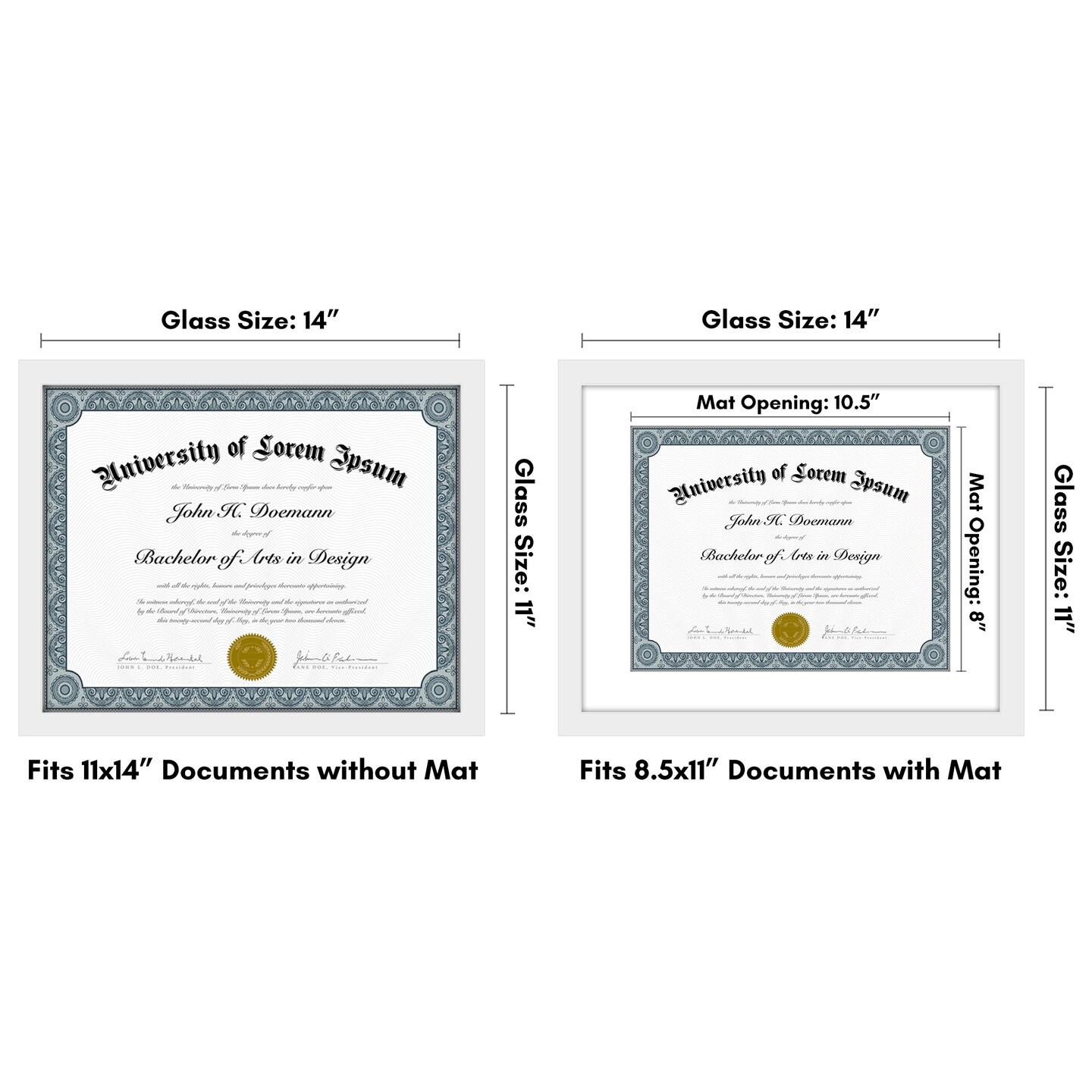 Americanflat 11x14 Diploma Frame - 8.5x11 with Mat or 11x14 without Mat - Certificate Frame for Displaying Documentation - Shatter Resistant Glass - Hanging Hardware