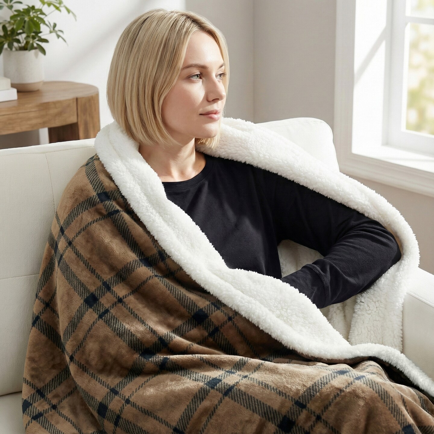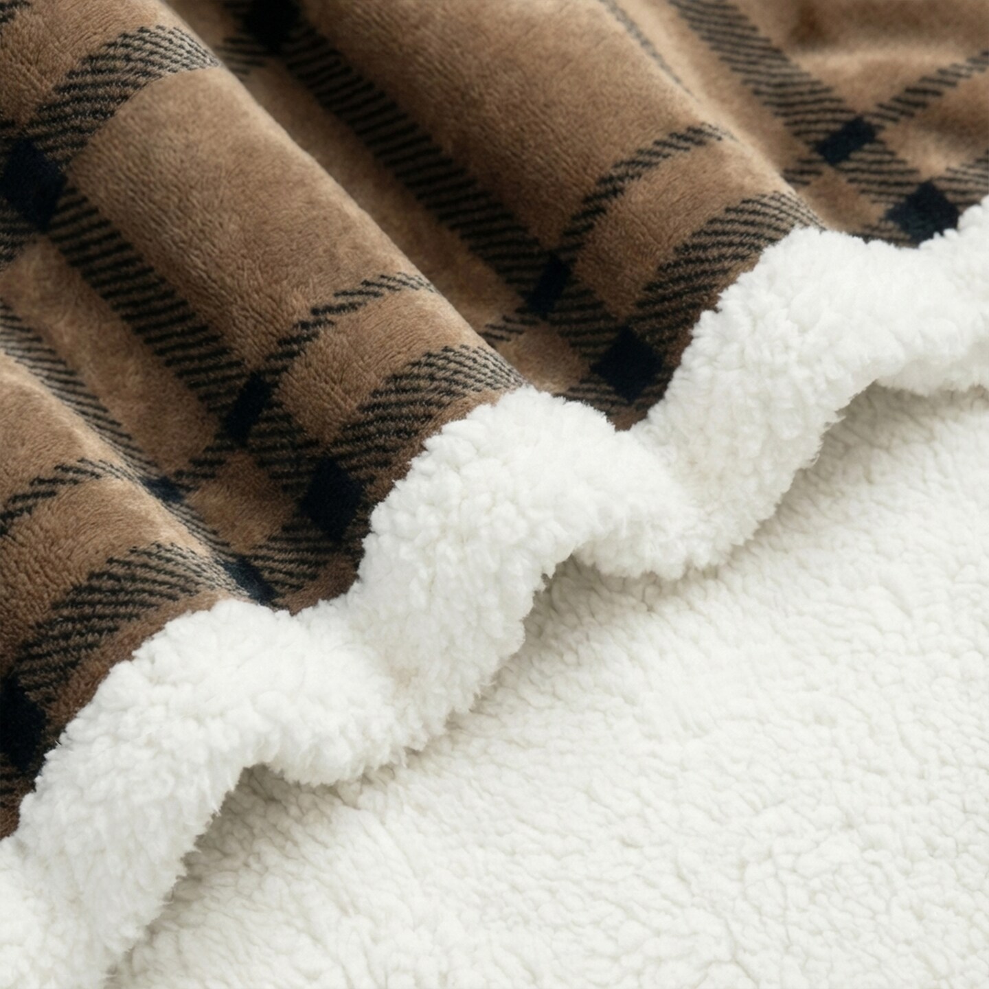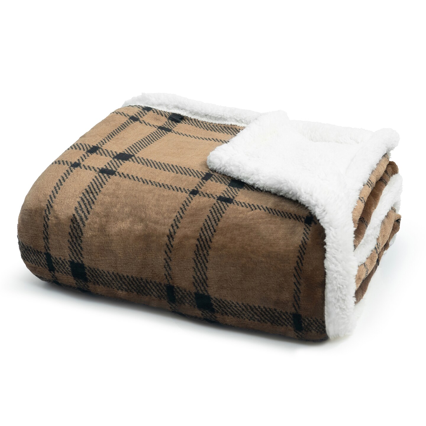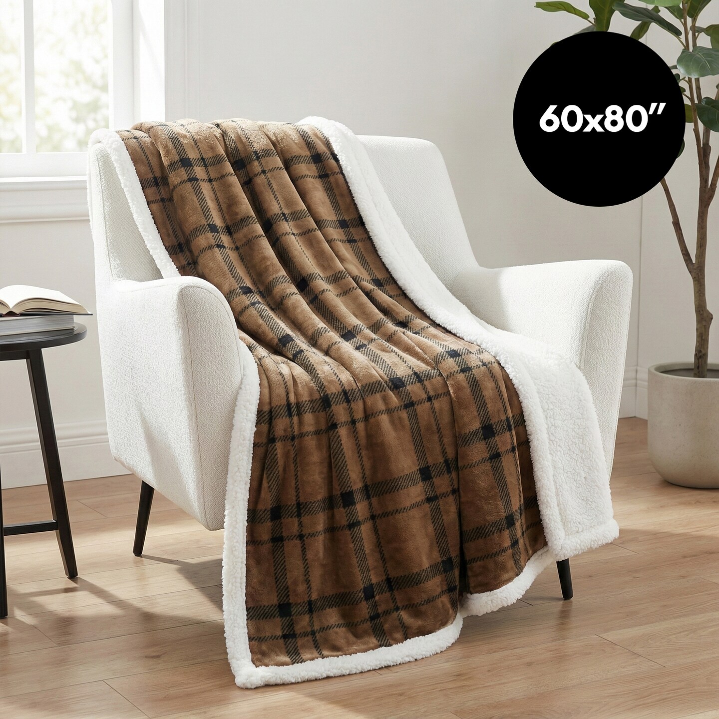 Americanflat 60x80 Oversized Tattersall Fleece Throw Blanket - Reversible Sherpa Backing - Ultra Soft Plush Comfort - Cozy Warmth For Couch Or Bed - Brown