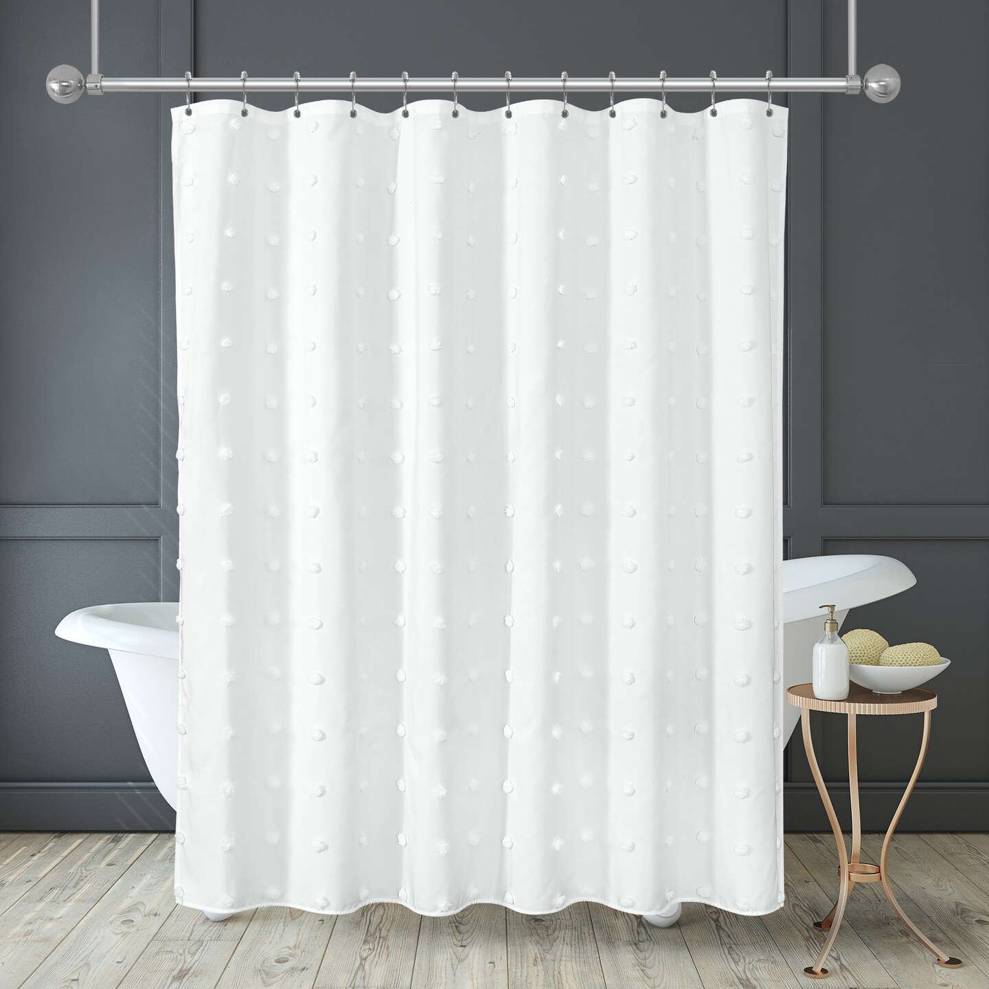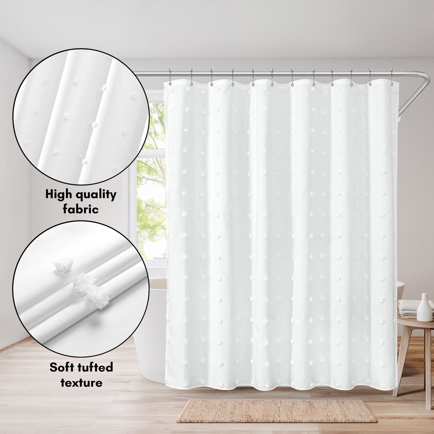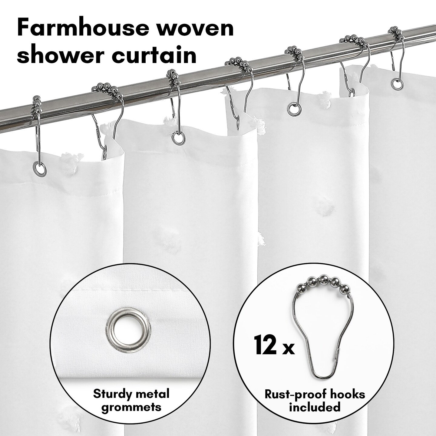 Americanflat 71x71 White Woven Shower Curtain with Tassel And Accents - Includes 12 Grommets and Hooks - 100% Polyester
