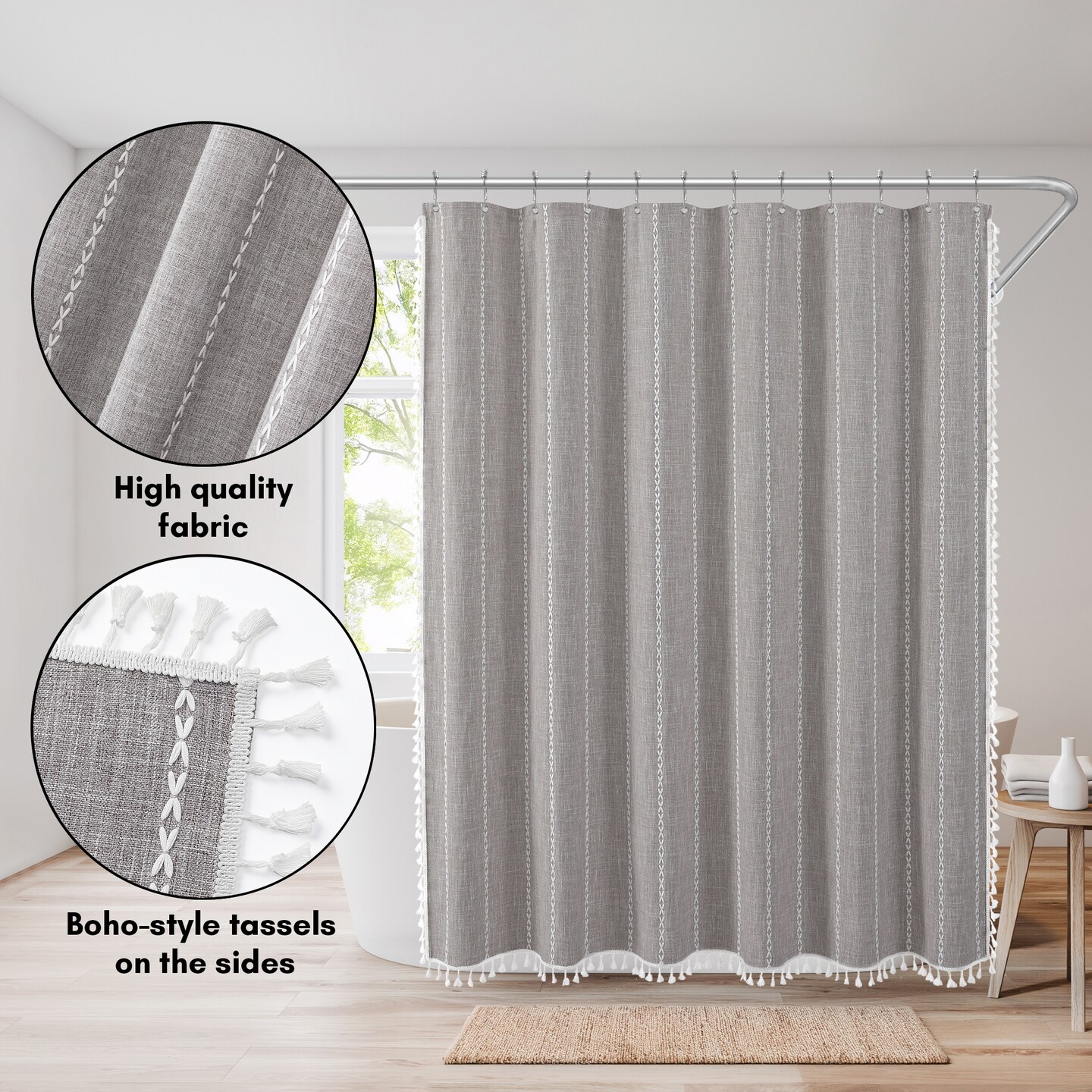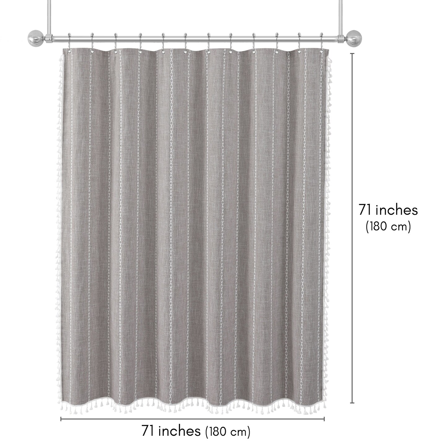 Americanflat 71x71 Woven Linen Shower Curtain with Tassel Accents - Includes 12 Grommets and Hooks - 100% Polyester