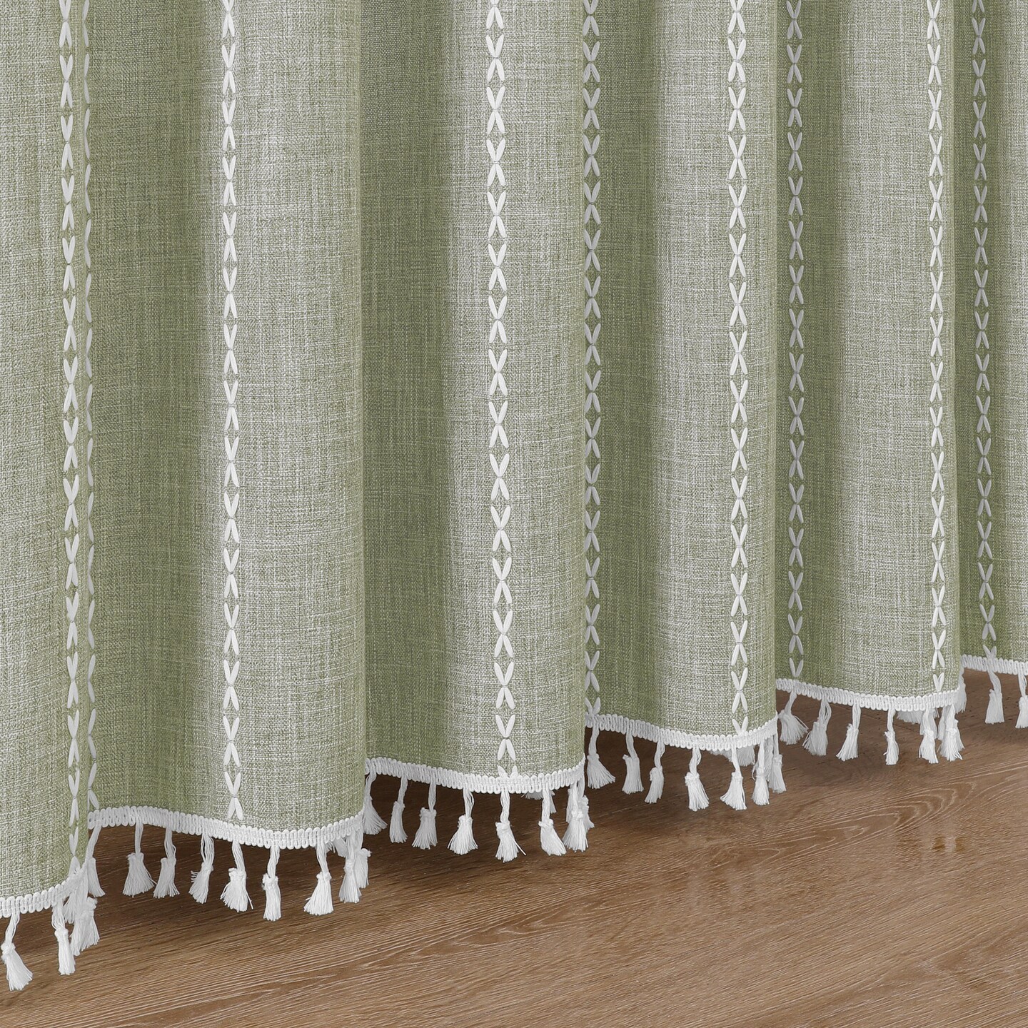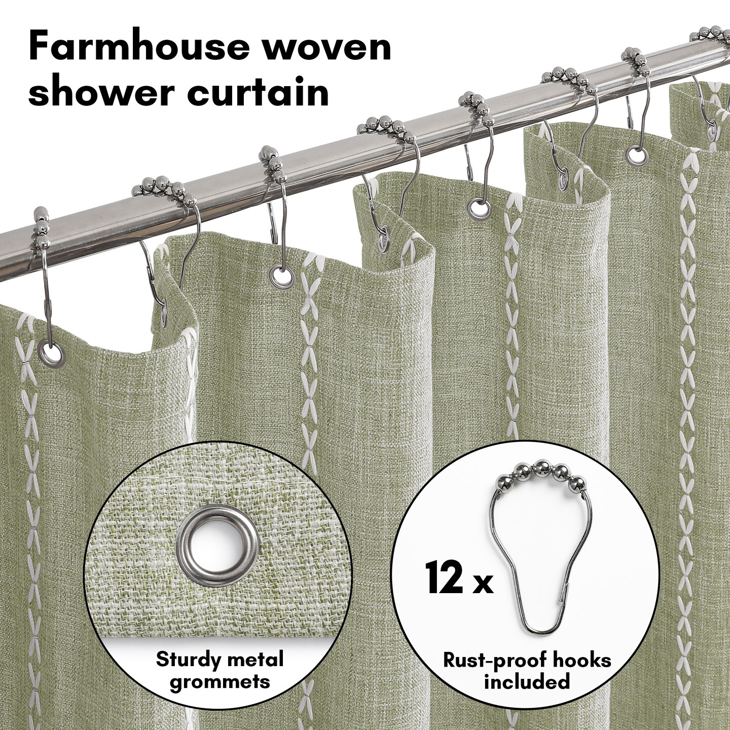 Americanflat 71x71 Woven Linen Shower Curtain with Tassel Accents - Includes 12 Grommets and Hooks - 100% Polyester