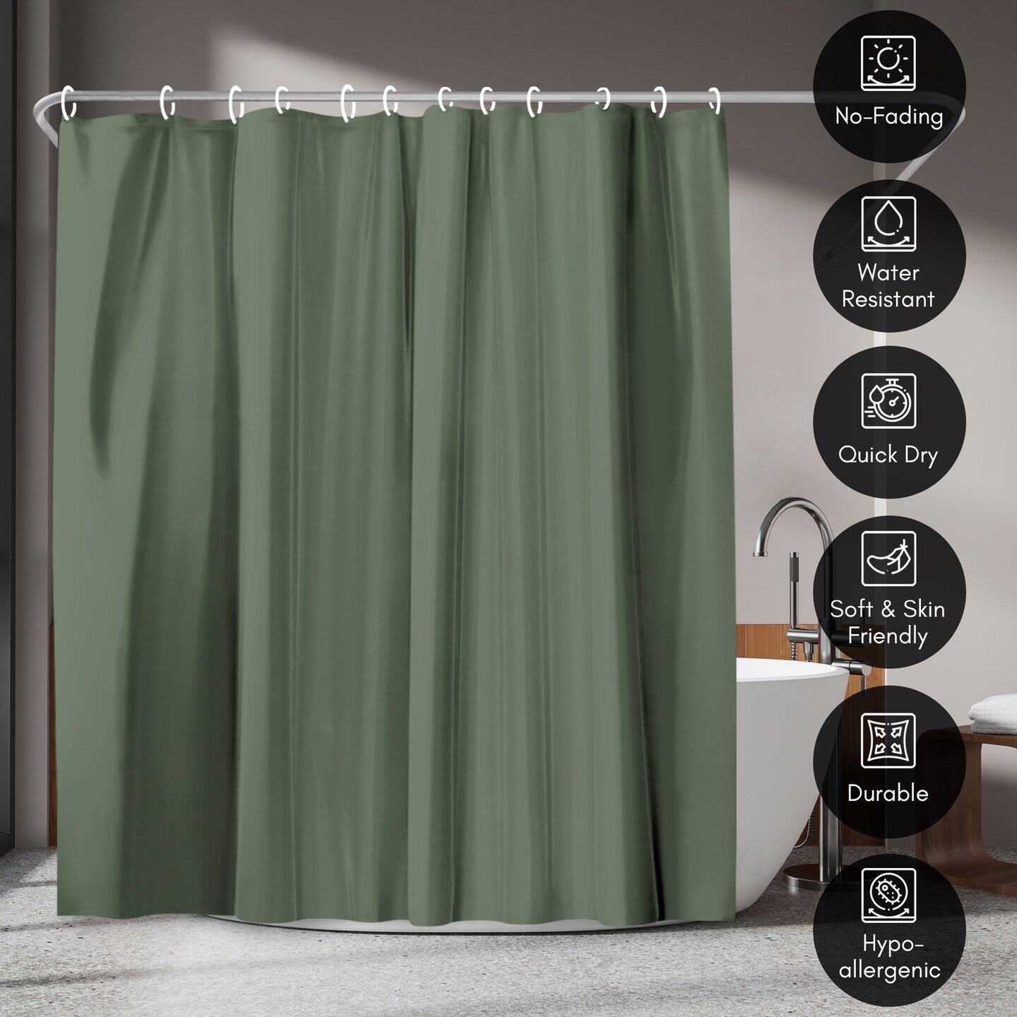 Americanflat 71x74 Solid Green Shower Curtain - Water Resistant - Polyester Fabric