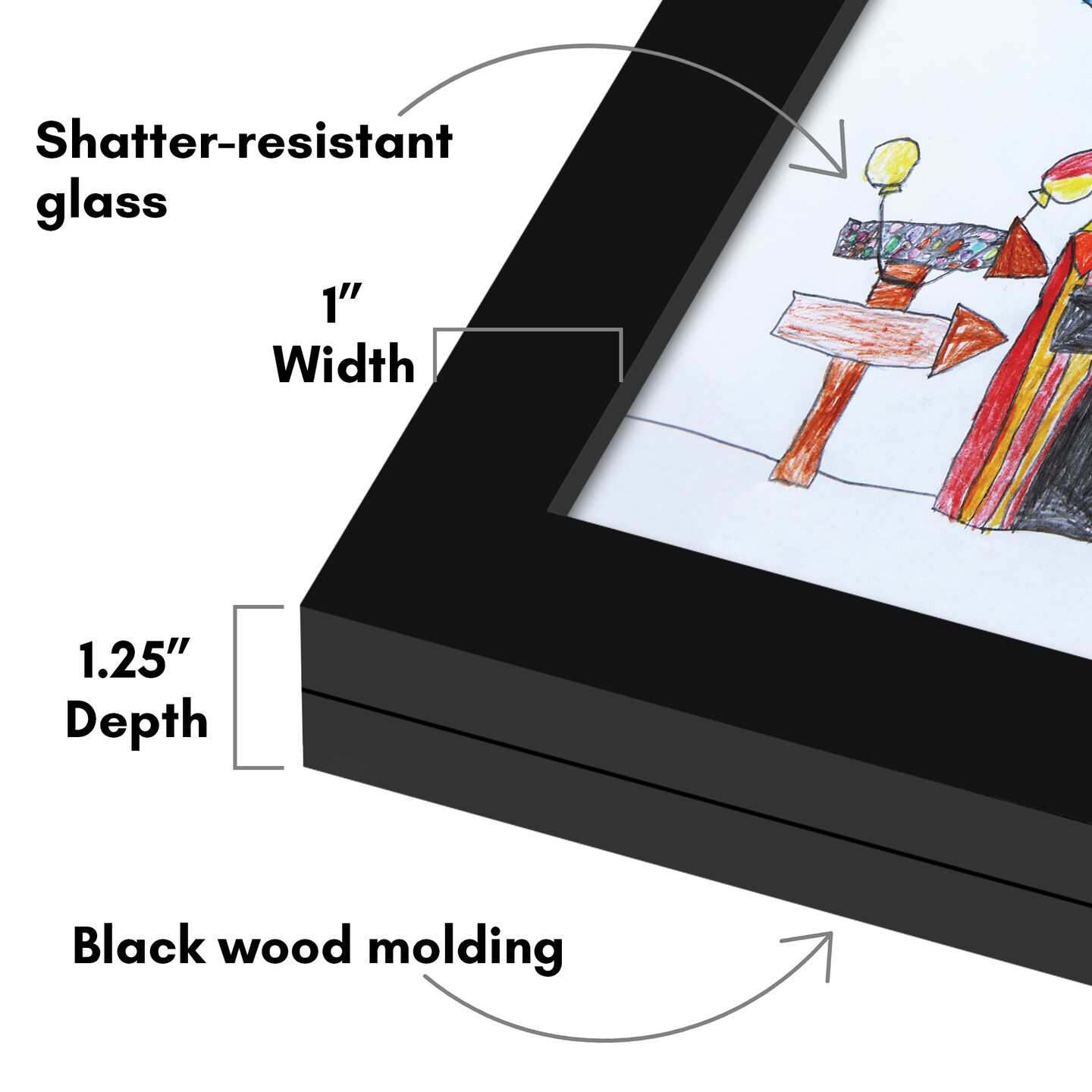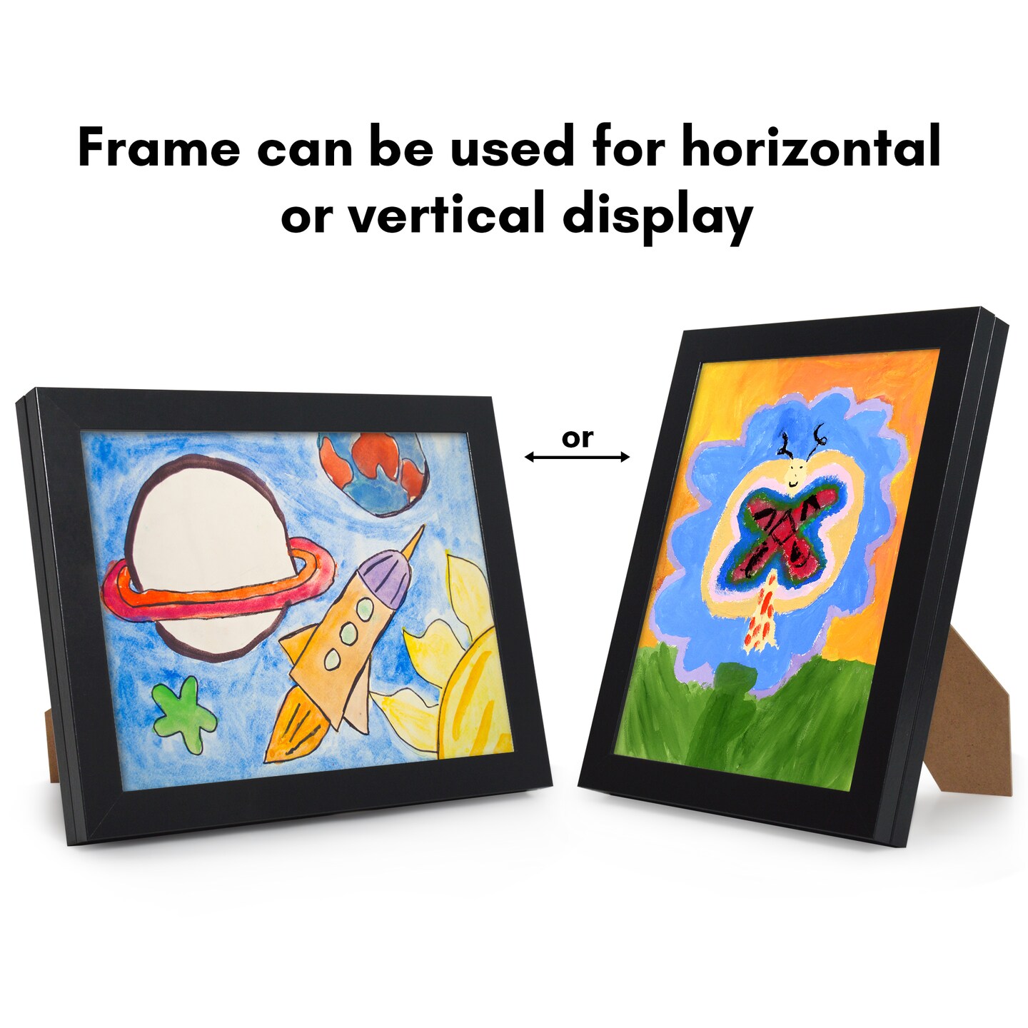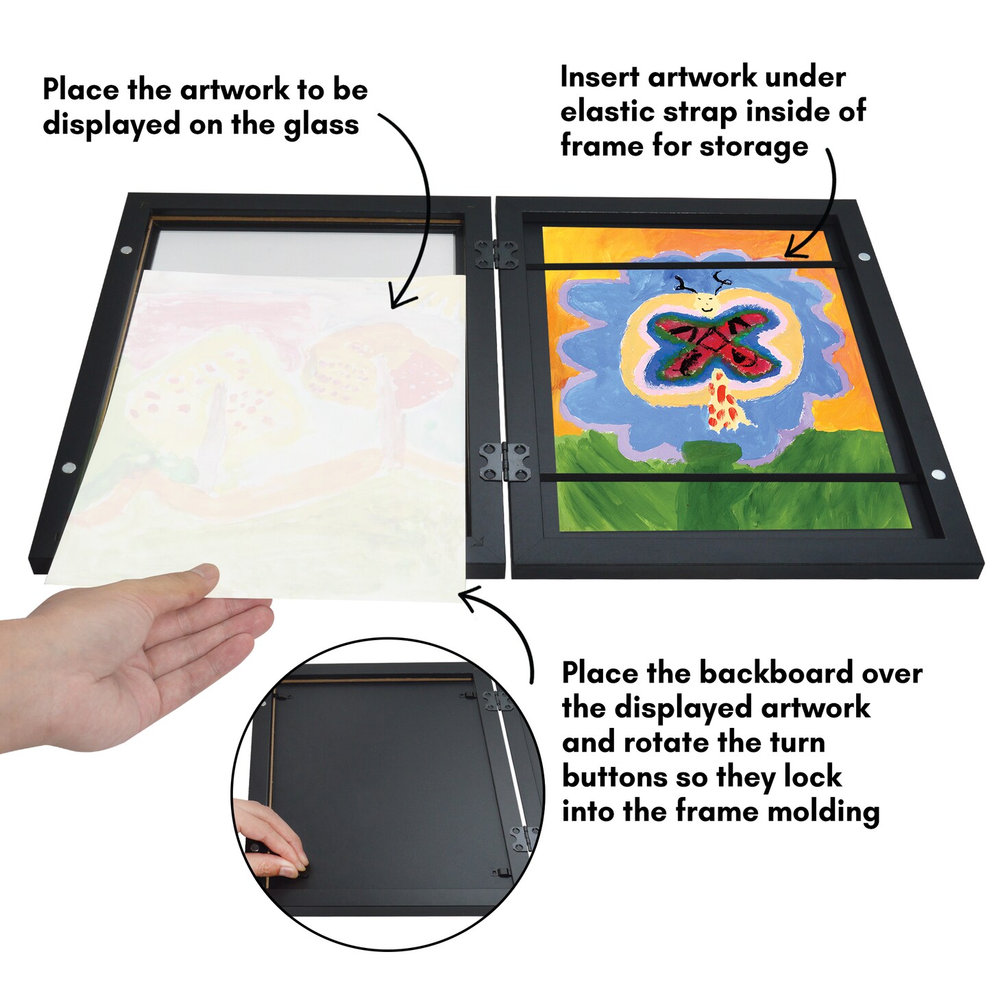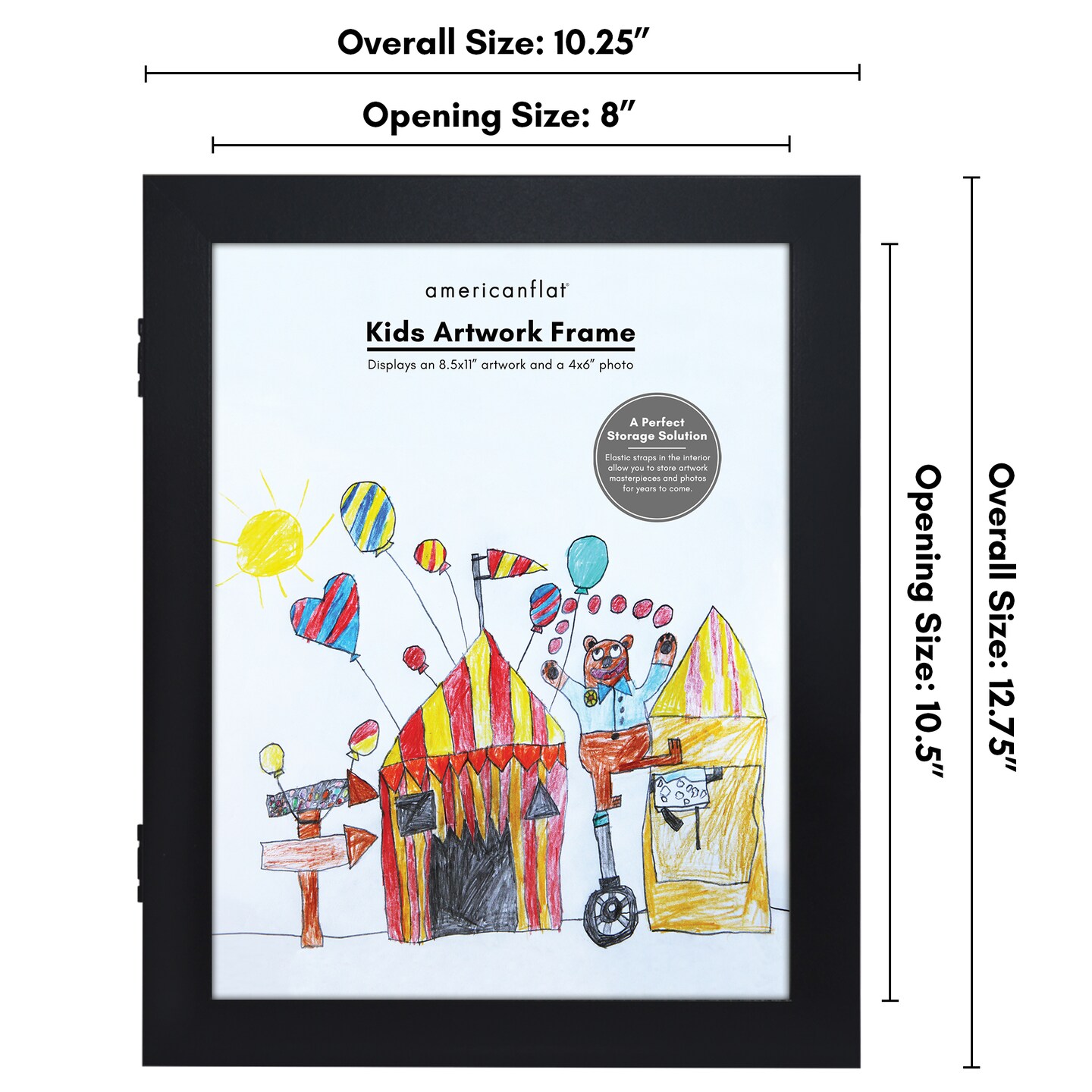 Americanflat 8.5x11 Front Loading Kids Art Frame - Kids Artwork Frame - Elastic Strap to Secure Artwork - Shatter Resistant Glass - Hanging Hardware - Includes Easel