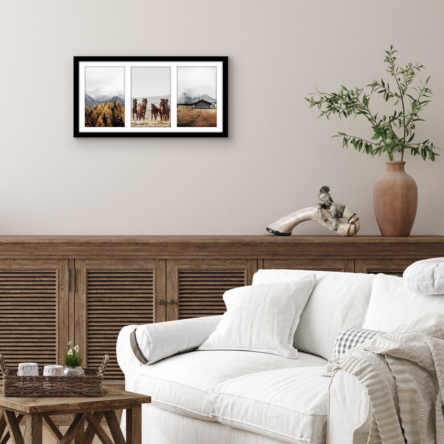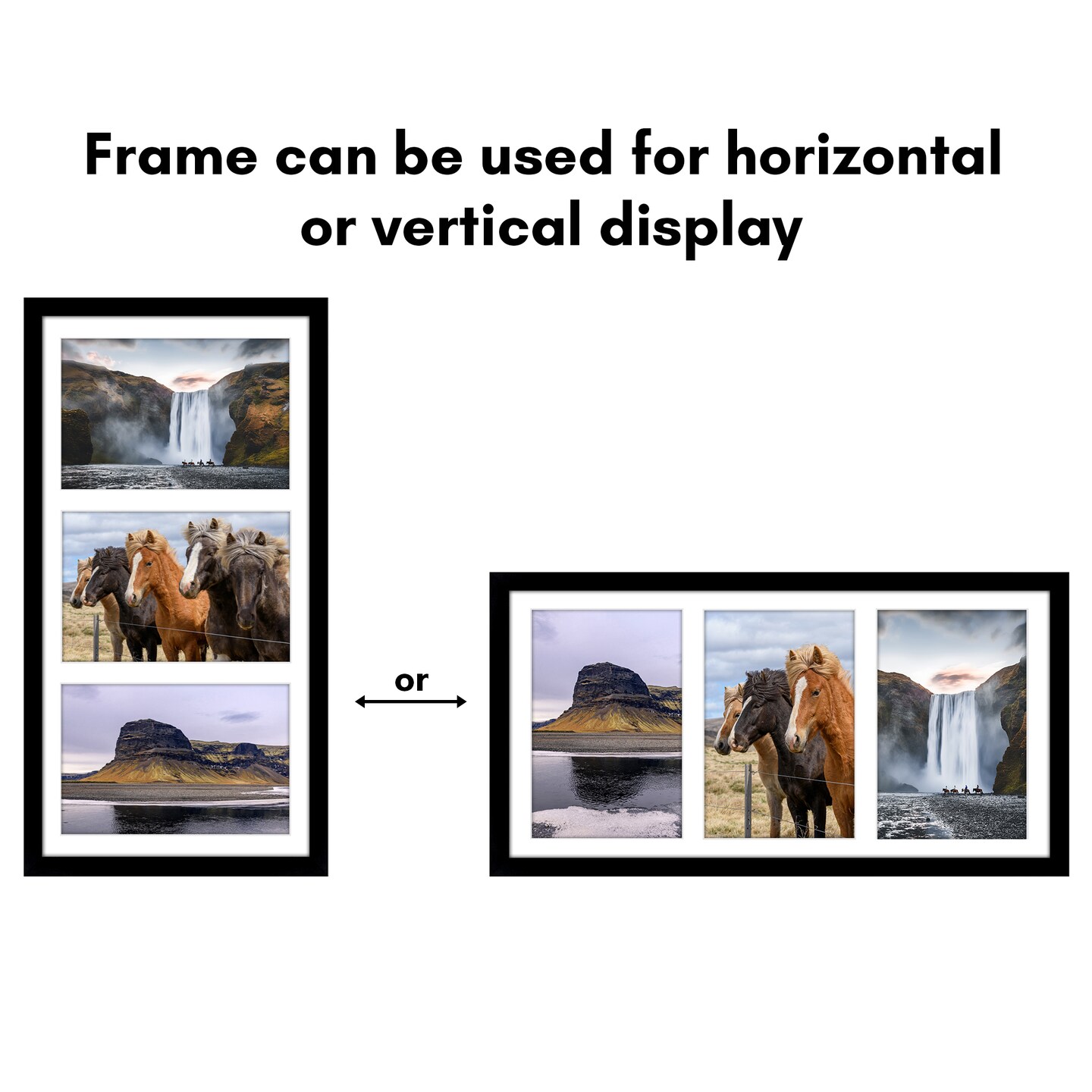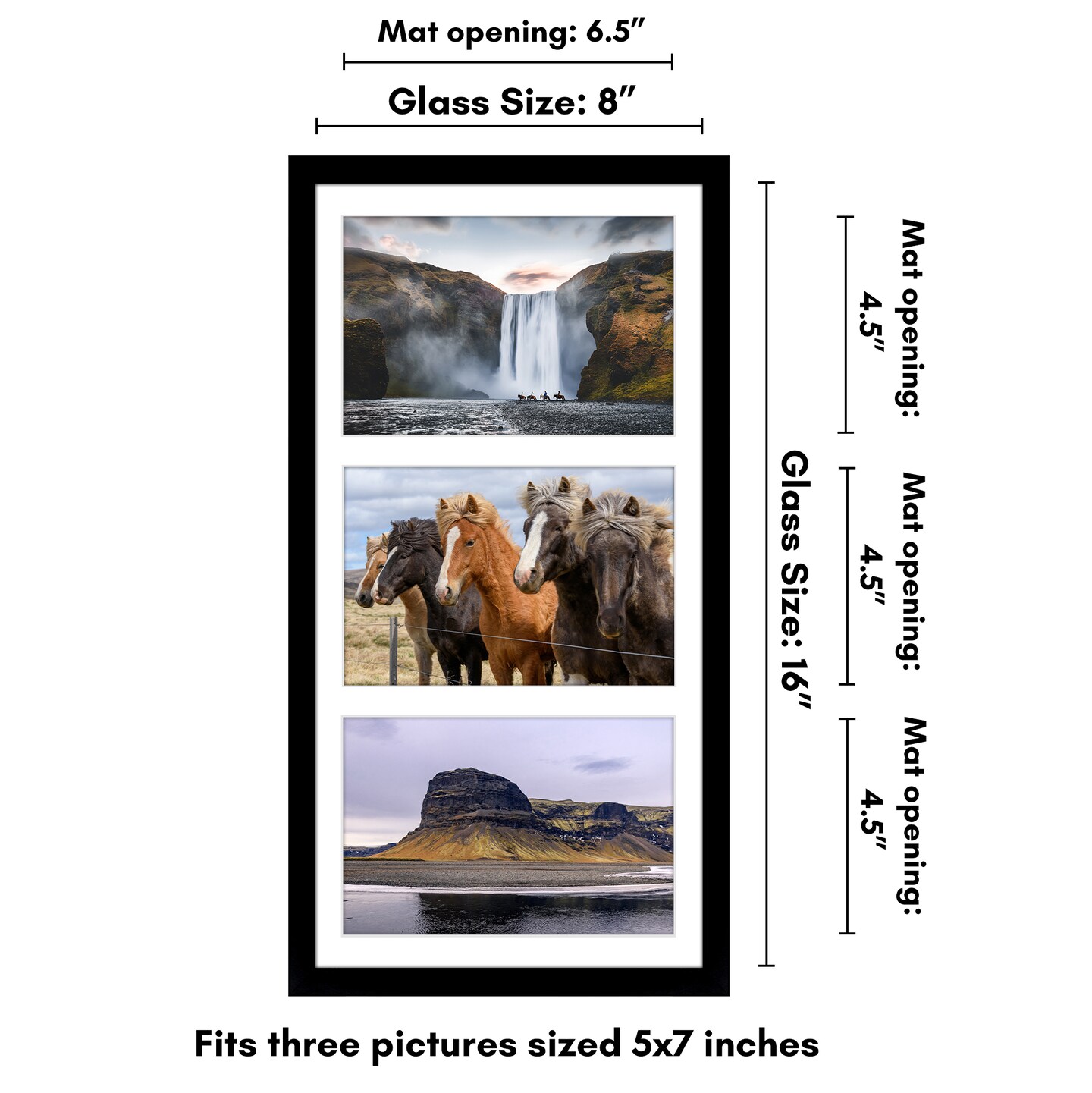 Americanflat 8x16 Collage Picture Frame - Displays Three 5x7 Photos at Once - Family Photo Collage Frame - Shatter Resistant Glass - Hanging Hardware for Horizontal or Vertical Display - Black