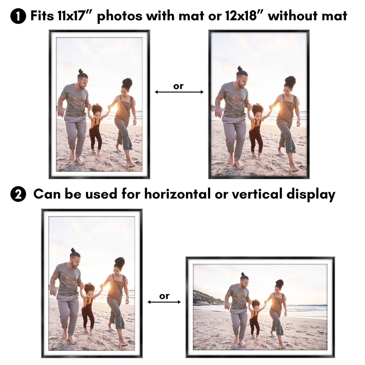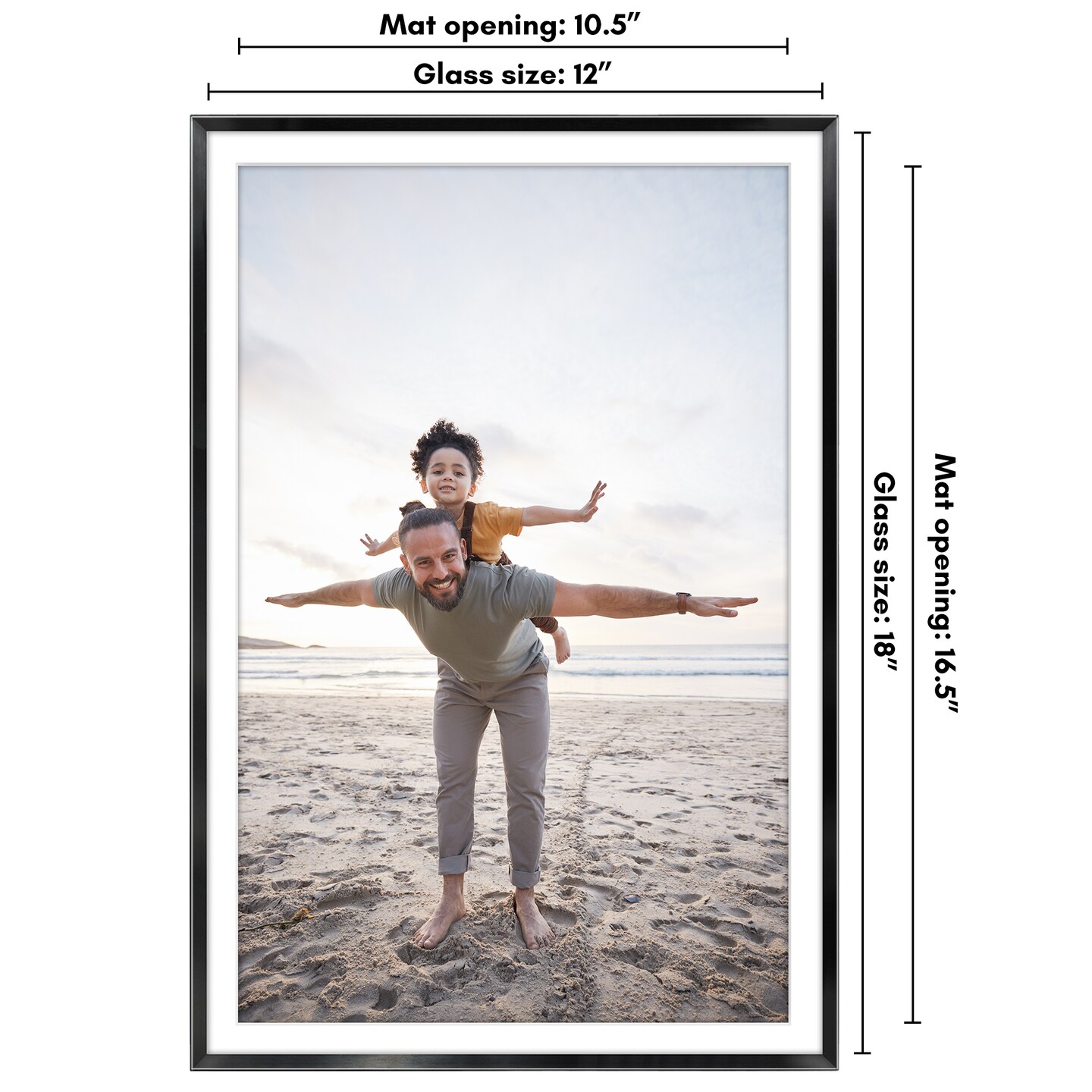 Americanflat Aluminum Picture Frame with Mat - Metal Photo Frame - Black Metal Molding Frame - Shatter Resistant Glass - Hanging Hardware