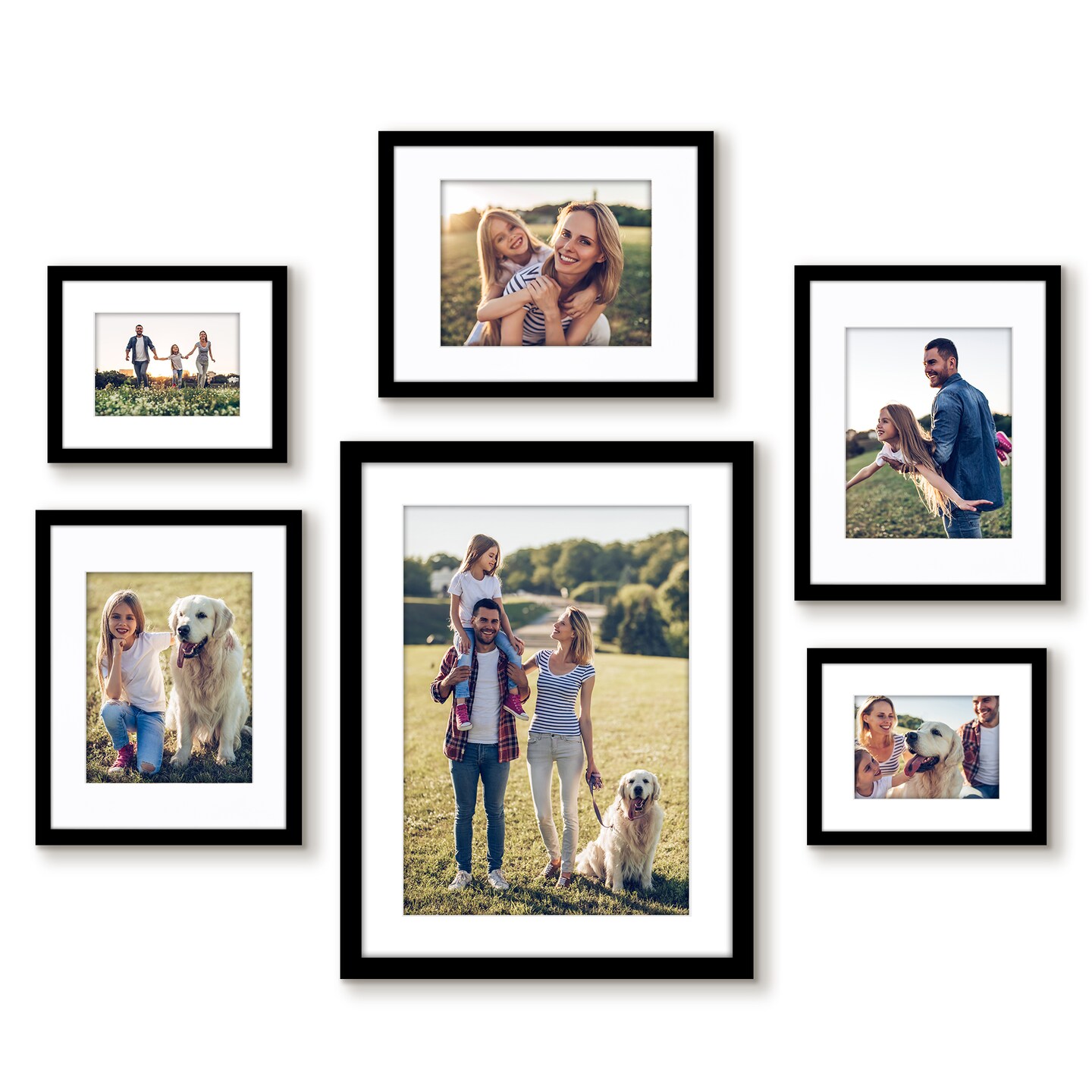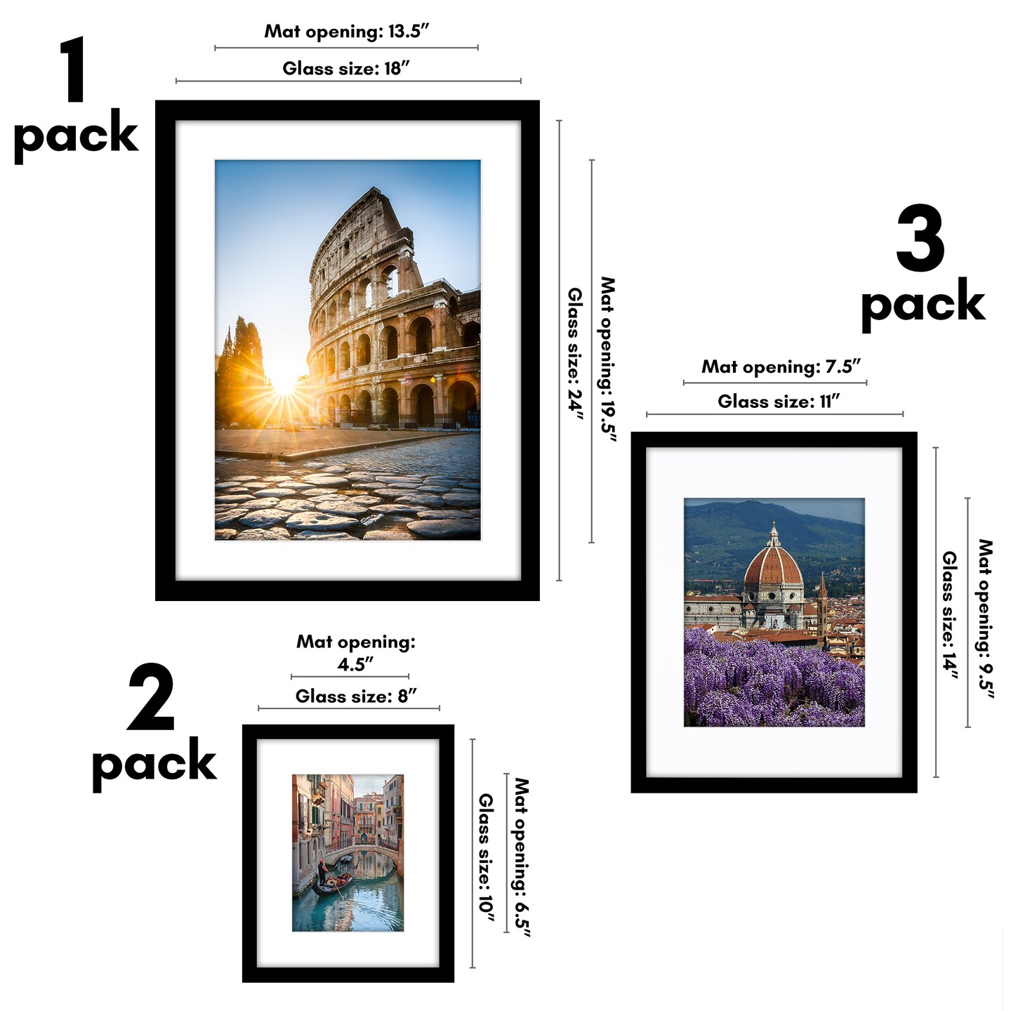 Americanflat Black Picture Frame Gallery Set - Shatter-Resistant Glass - White Mats - 6 Pack - Multi - Size for 8x10, 11x14, 18x24