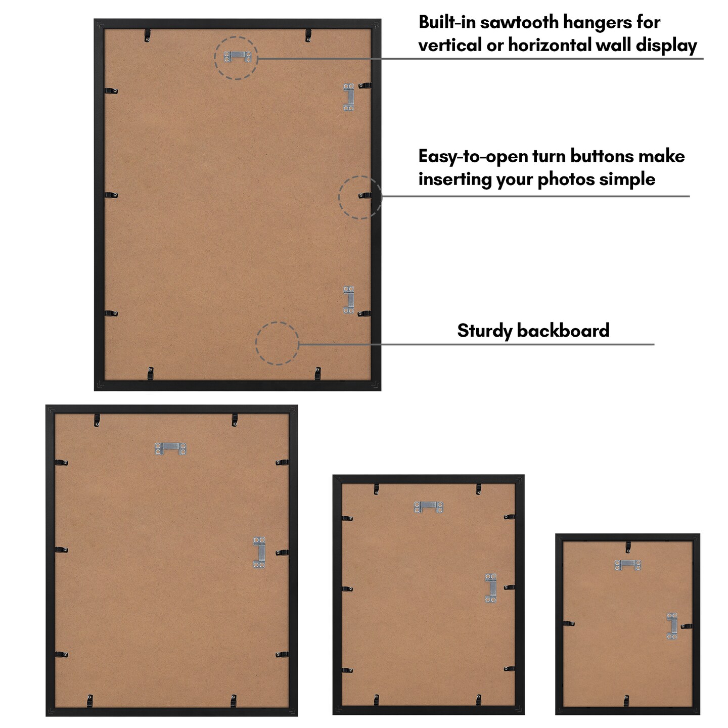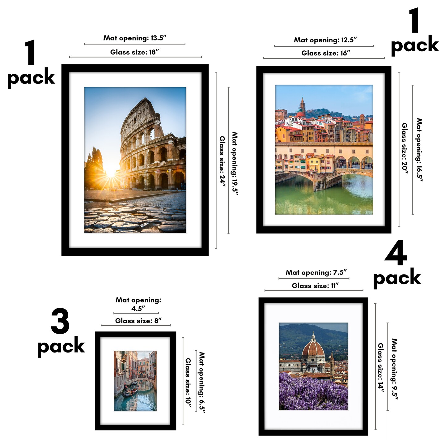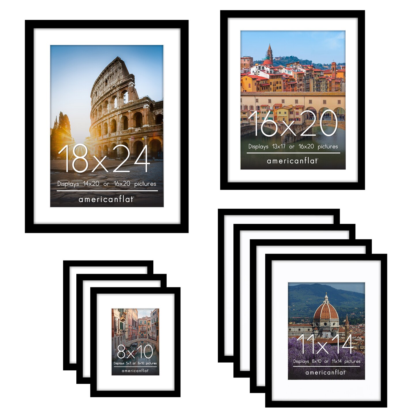 Americanflat Black Picture Frame Gallery Set - Shatter-Resistant Glass - White Mats - 9 Pack - Multi - Size for 8x10, 11x14, 16x20, 18x24