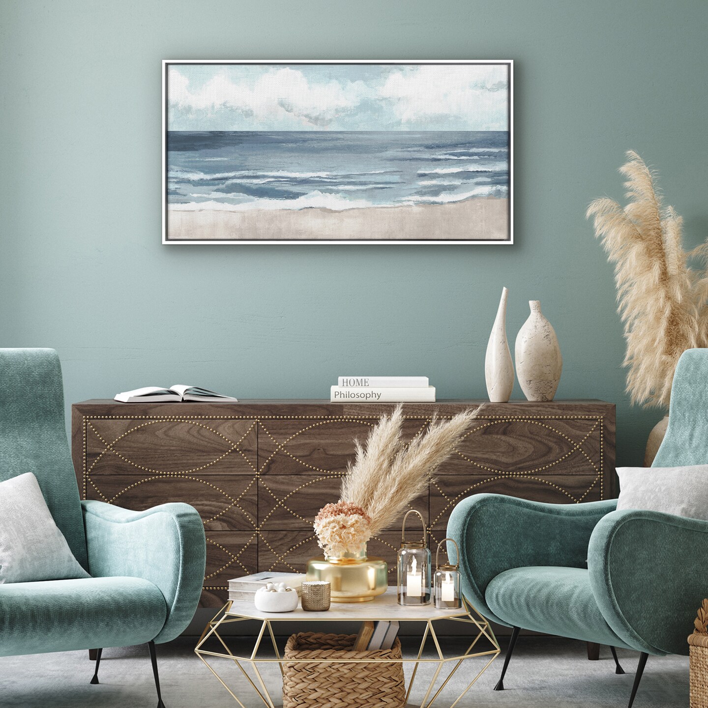 Americanflat Canvas Wall Art Featuring Beige Sand, Blue Ocean and White Sky - Coastal Beach Wall Art