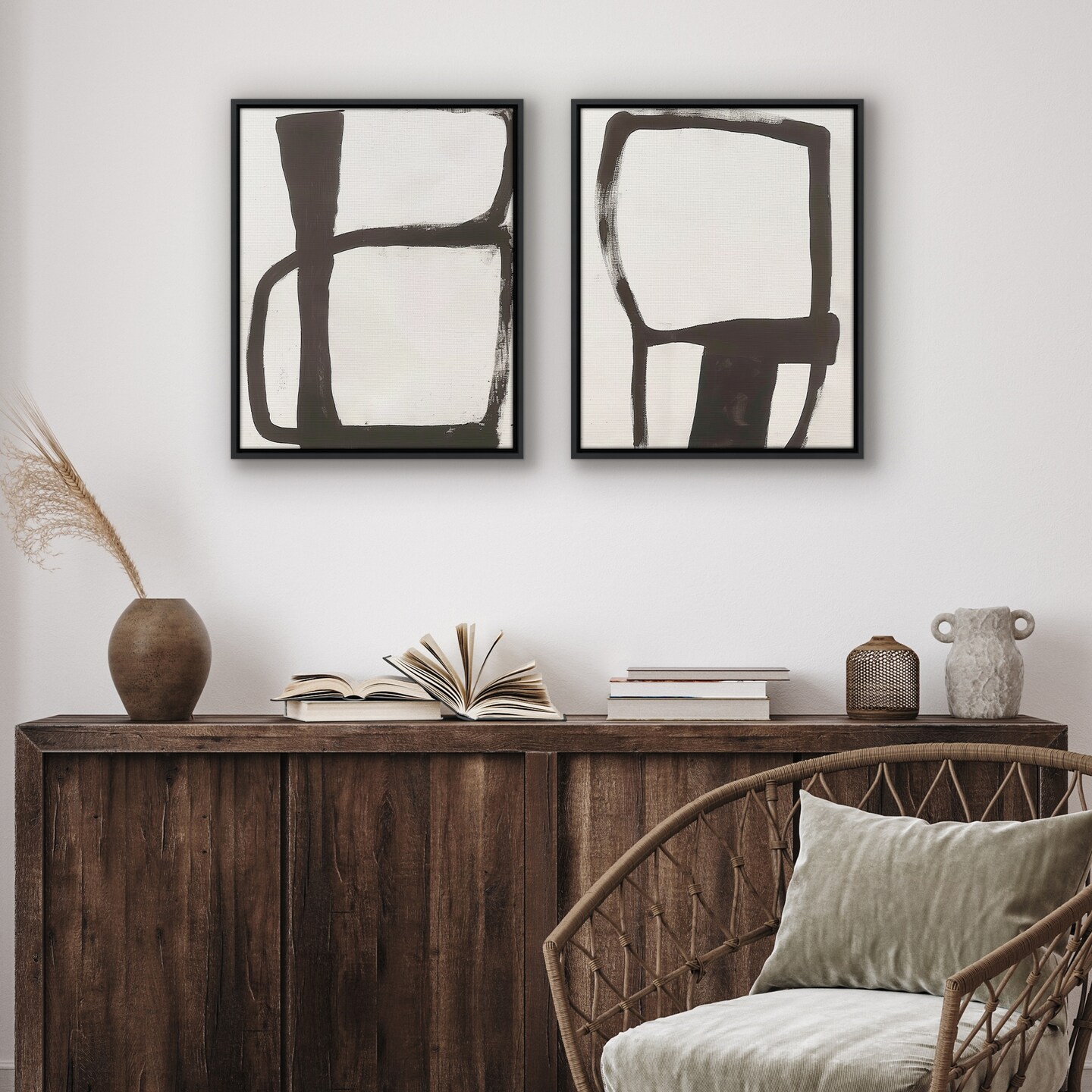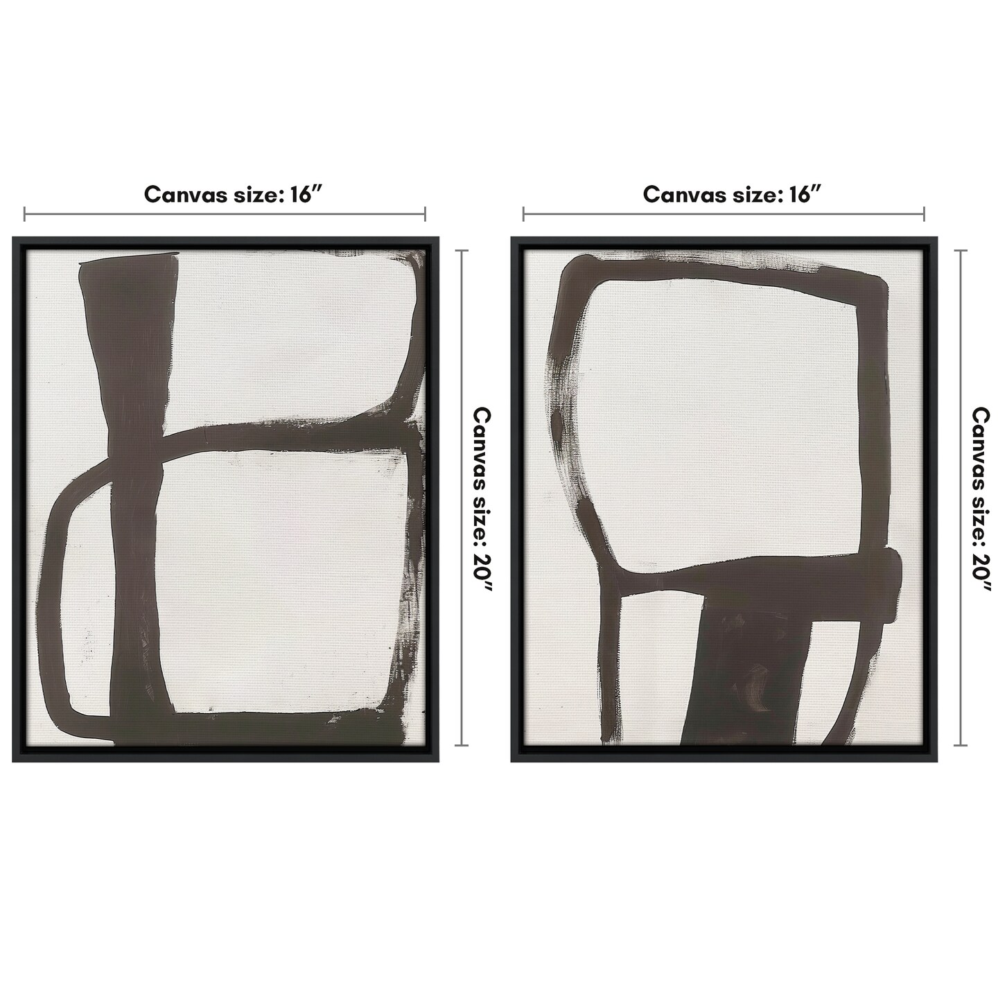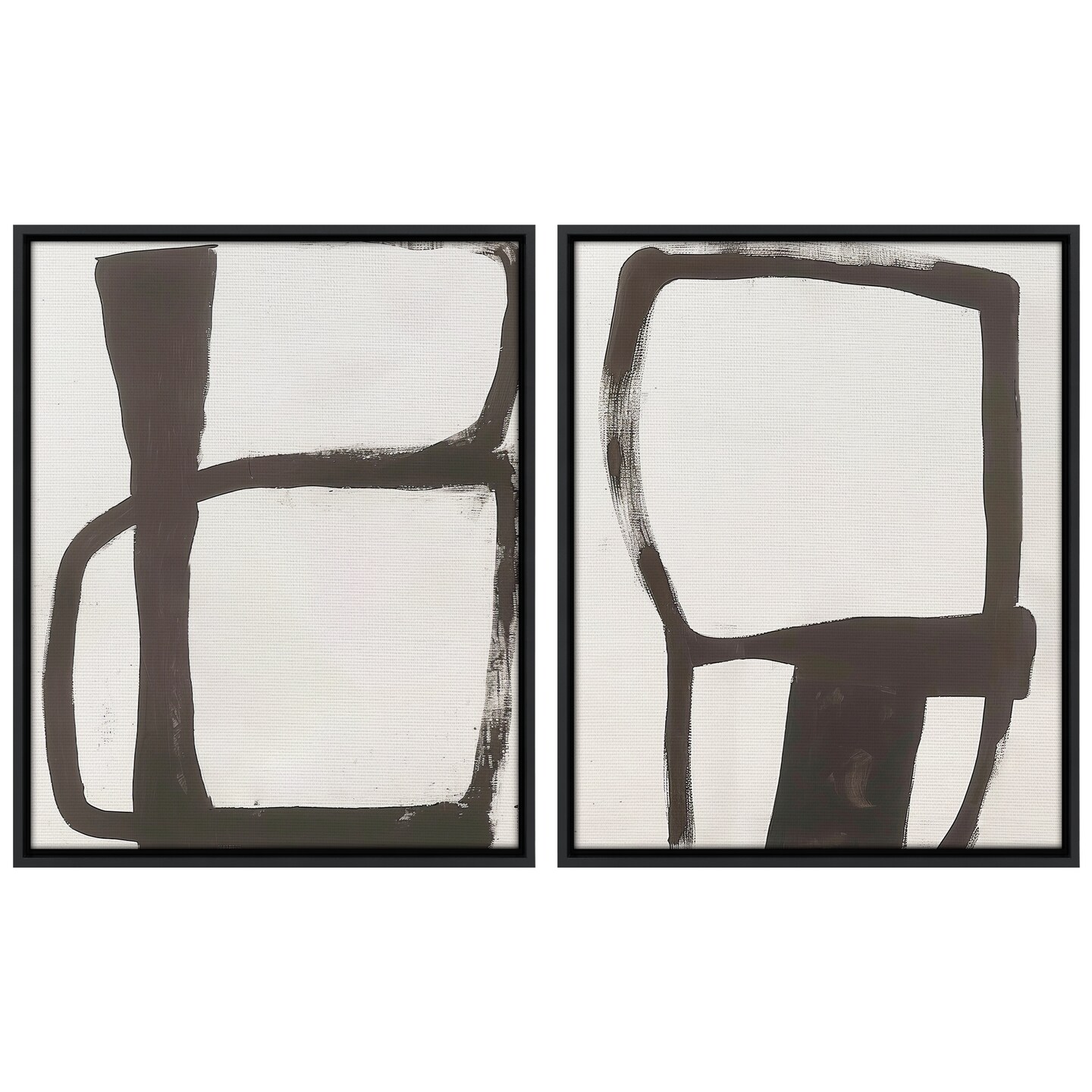 Americanflat Canvas Wall Art Featuring Black Geometric Brushstrokes - White Background - Set of 2 - Abstract Wall Art