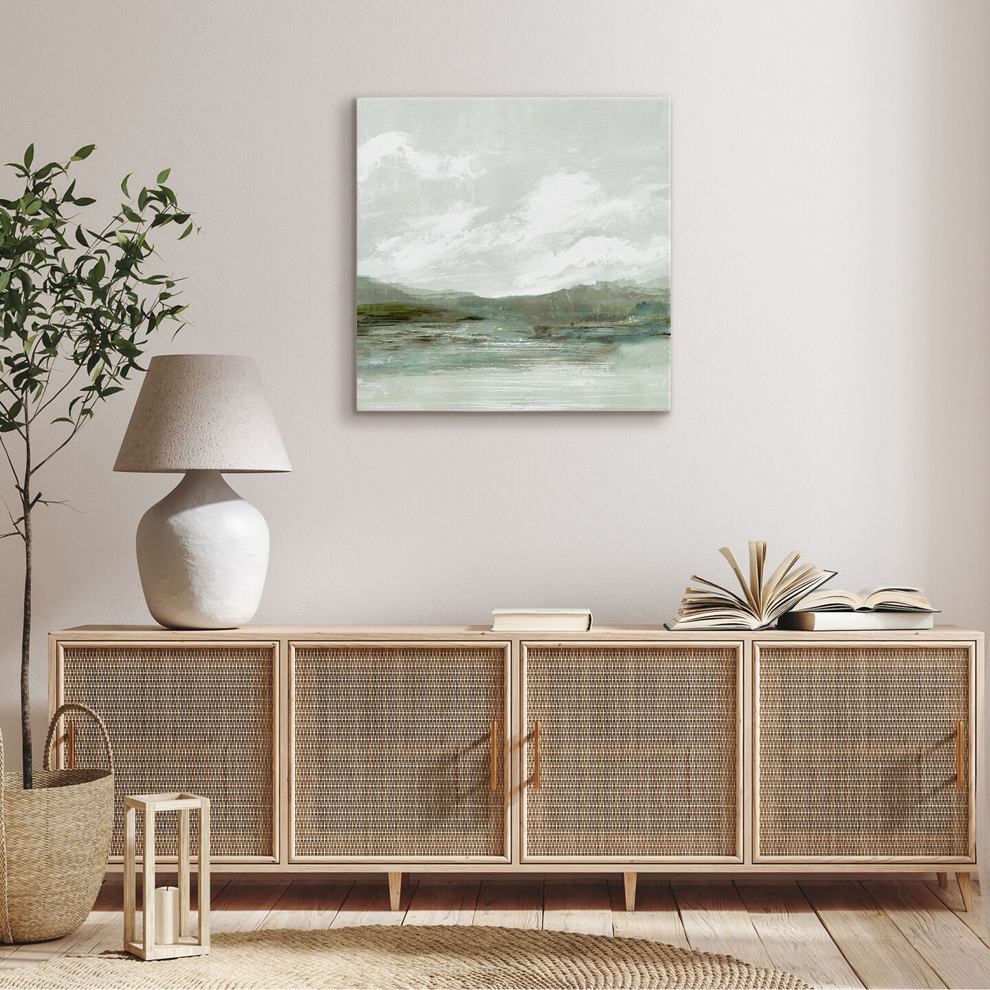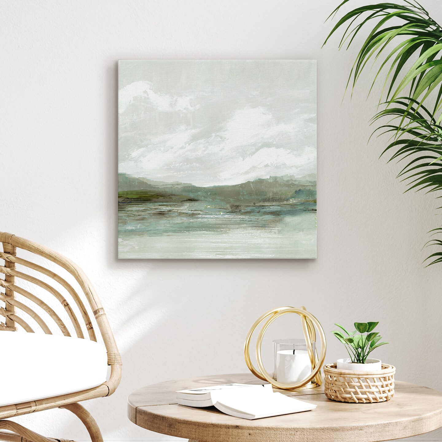 Americanflat Canvas Wall Art Featuring Green Hills, Blue Water and White Sky with Hand-Painted Accents - Gallery Wrap - Landscape Wall Art