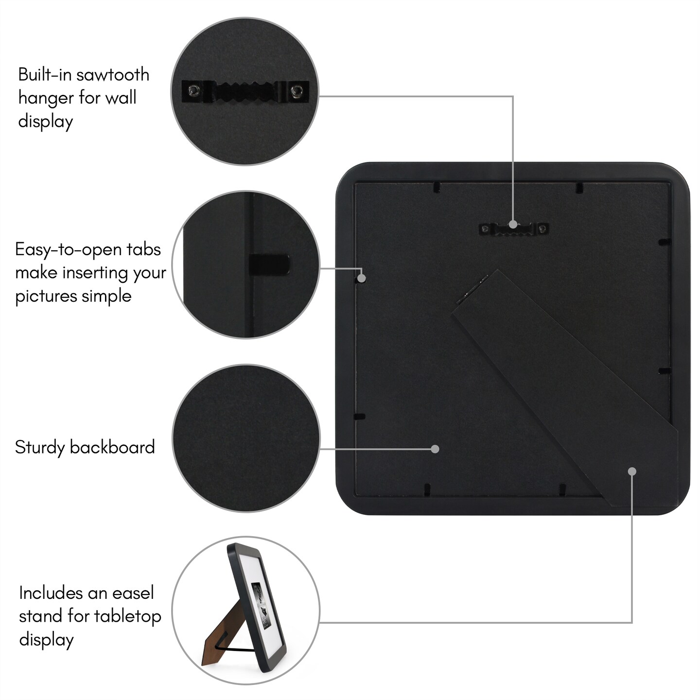 Americanflat Curved Corner Photo Frame with Mat - Picture Frame with Round Corners - Shatter Resistant Glass - Triangle Hanging Hardware - Includes Easel - Black