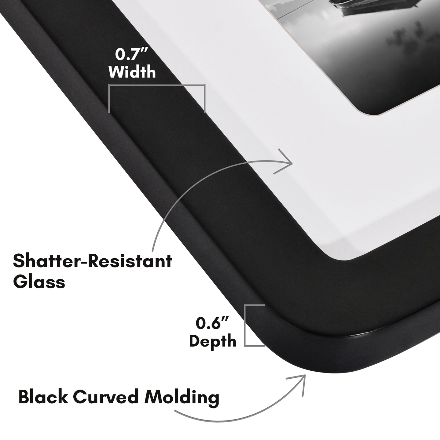Americanflat Curved Corner Photo Frame with Mat - Picture Frame with Round Corners - Shatter Resistant Glass - Triangle Hanging Hardware - Includes Easel - Black