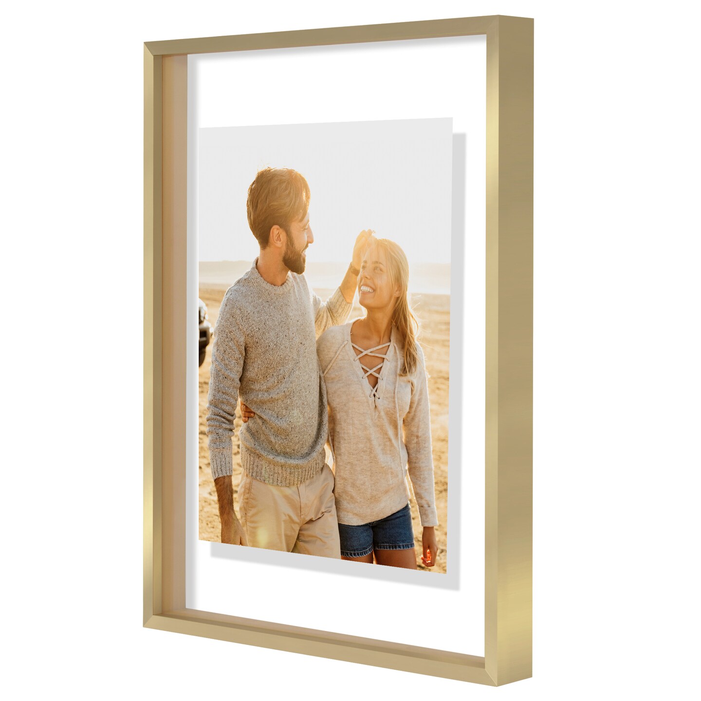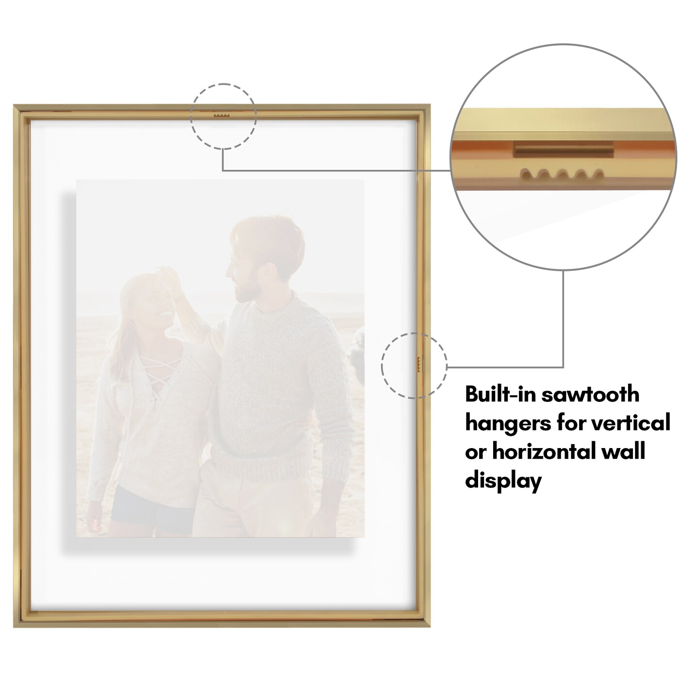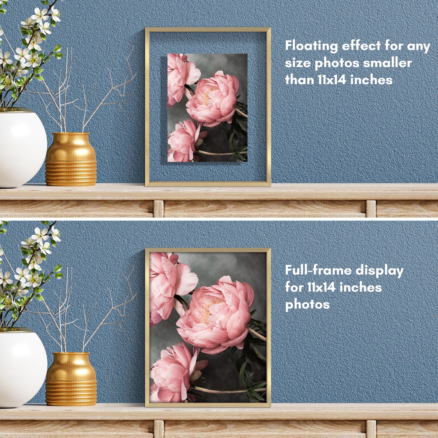 Americanflat Floating Aluminum Picture Frame - Sleek Aluminum Photo Frame for Wall Display - Black Metal Molded Frame - Shatter Resistant Glass - Hanging Hardware